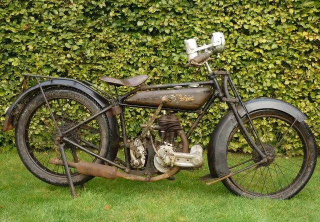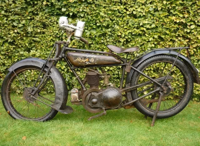 Deze Engelse Raleigh 350cc zijklepper van +/- 1926 is in originele ongerestaureerde staat. Zeer mooie basis voor restauratie. Motor heeft goede compressie en versnellingen laten zich schakelen. Deze moto is origineel verkocht in Erfurt (Duitsland) bij Bruno Hackel.