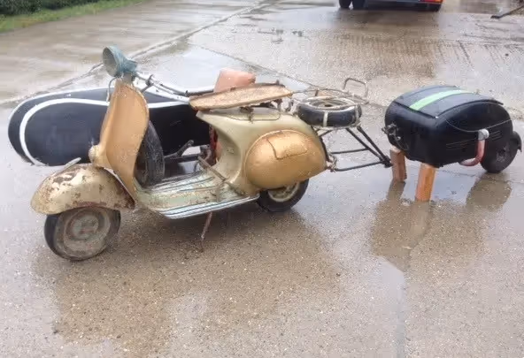 Vespa scooter 125cc van 1957 met Belgische Precision zijspan en Pav 41 aanhanger.