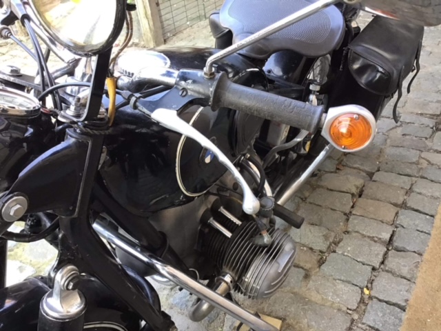 BMW R50/2 van 1962. Dit is een 500cc boxer, gebruikt door de Franse Gerndarmerie. Motor heeft speciaal bagagerek en tassen voor de radio, 2 batterijen en is op 12 volt, en heeft de speciale kickstarter zoals gebruikelijk op deze Gendarmerie modellen. Motor is volledig gereviseerd en loopt perfect. Het volledige Gendarmerie uniform voor escorte en parade met etalagepop kost 1250 euro.