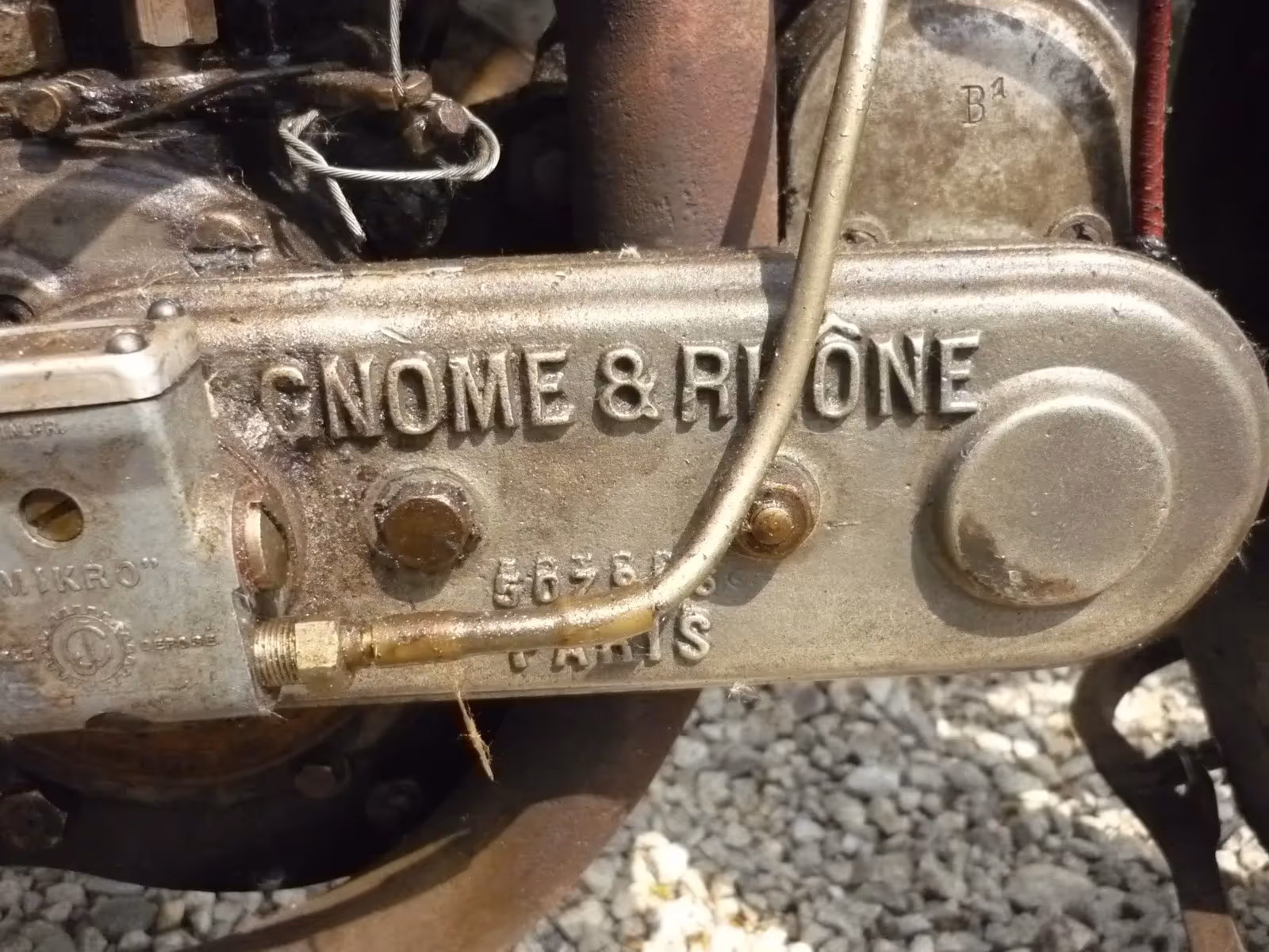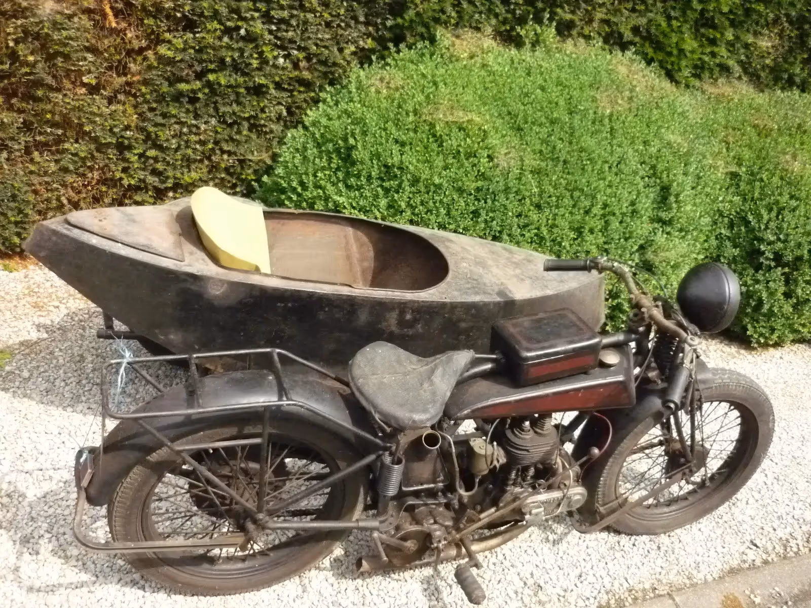 Ongerestaureerde en originele Franse Gnome Rhone model D. Dit is een 500cc ééncilinder zijklepper flattanker met origineel zijspan.
