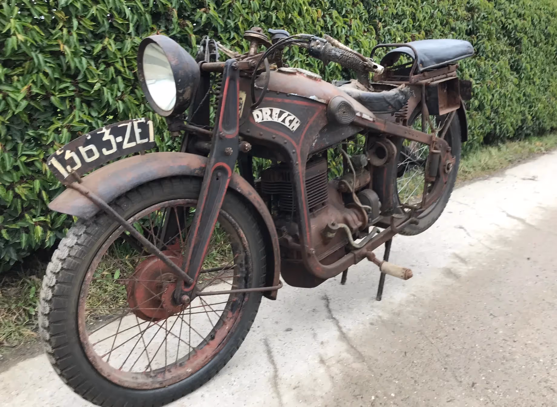 Ongerestaureerde en originele Franse Dresch 500 Monobloc. Dit is het topmodel van Dresch met een 500cc 2 cilinder zijklepper in lijn met karden aandrijving. Zeldzame motorfiets met verend stuur als optie. Dit verend stuur van het merk Planor was leverbaar in bladveren en in draadveren. Zelden worden deze motorfietsen aangeboden en zeker in deze originele staat.