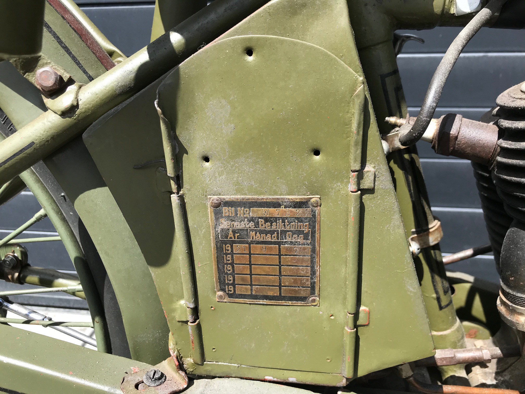 Amerikaanse Excelsior model 19. Dit is een 1000cc ioe V-twin van eind 1918 begin 1919. Deze motorfiets heeft de verstevigde voorvork en heeft dienst gedaan in Europa op het einde van WOI. Hierna is deze voor het eerst ingeschreven in Zweden op 7/9/1921 in Dalarnas. Motorfiets komt uit de MC collection in Zweden. Motorfiets heeft nog wat werk nodig zoals de stangetjes van koppeling/achterrem aan de linker zijde en de kickstarter moet ook nog even nagezien worden.