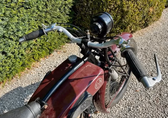 Oudere restauratie die nog wat zorg nodig heeft. Enkele onderdelen zijn fout zoals de uitlaat maar deze is in repro te koop. Heeft wel het zeldzame kleine originele Bosch koplampje.
