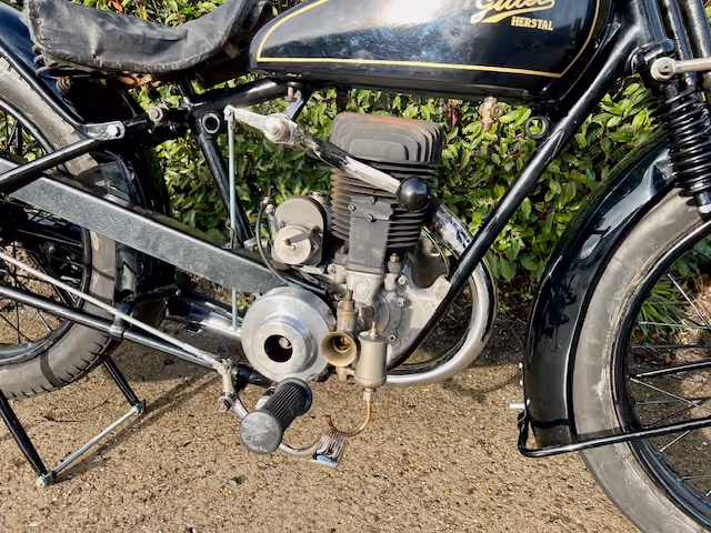 Belgische Gillet model Tour du Monde. Dit is een 350cc 2 takt met roterende inlaat van 1929. Onafgewerkte restauratie. Jaren geleden gedemonteerd, herspoten, nieuwe nikkel maar nooit weer opgebouwd. Nu los samen gebouwd om te laten zien dat deze zo goed als compleet is. Mooie basis voor restauratie.