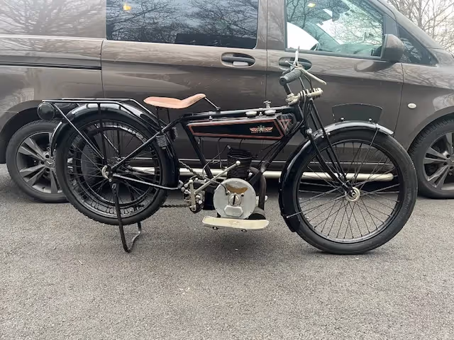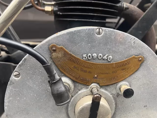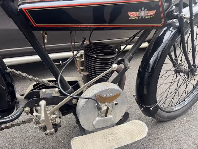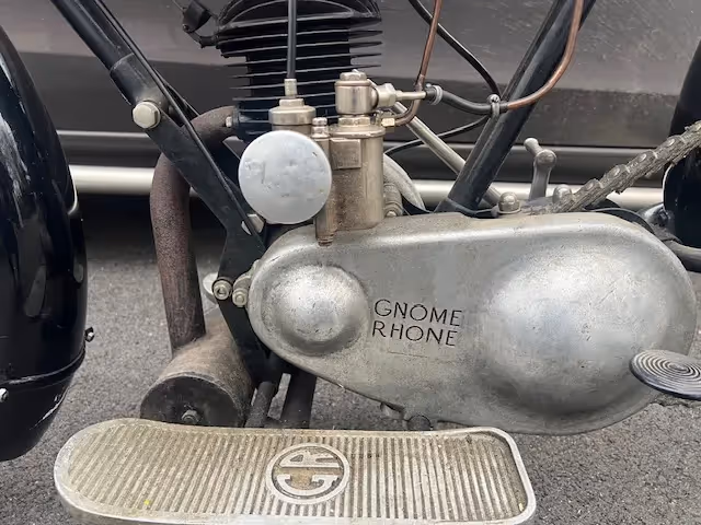 Mooie vroege Franse Gnome et Rhone model E. Dit is een 250cc 2 takt met riemaandrijving.