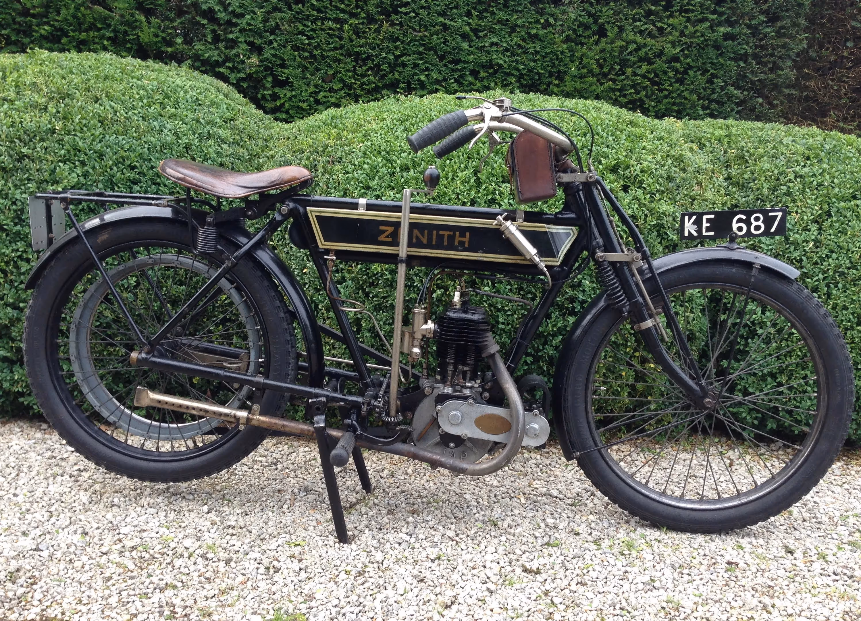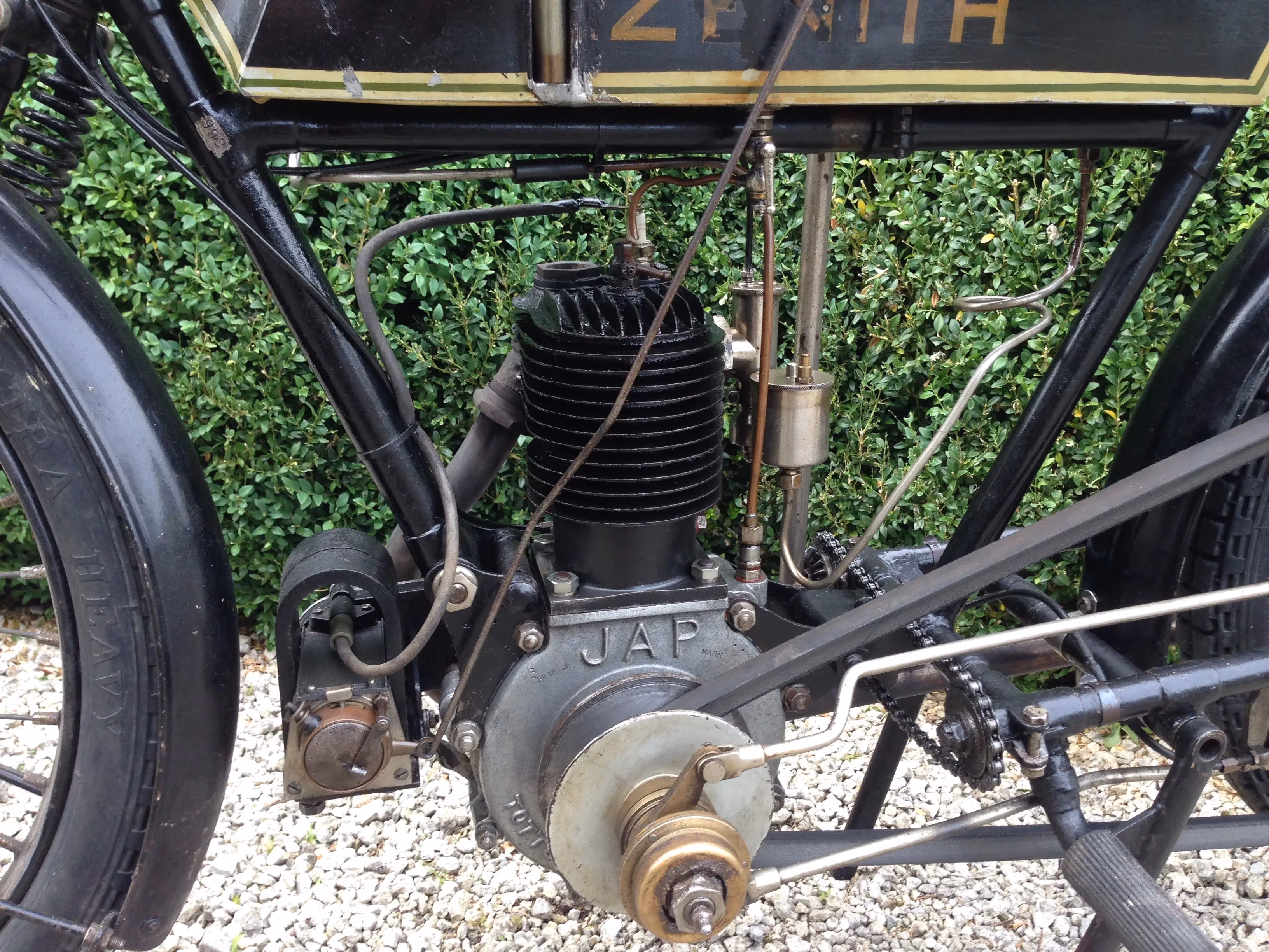 Deze Zenith is een bekende in de rondritten voor de pionier motorfietsen, heeft ongeveer 6 x de Pioniers Run in Engeland meegedaan en een 4 x de Oude Klepper Parade in De Haan België. Motor heeft dus ook het Pioneer certificaat en is in perfect rijdende staat. Deze Zenith is een 500cc JAP motor en is de oudste Zenith die bekend is met het Gradua systeem. Makkelijk te hekennen aan zijn vroeg type van frame dat achteraan de benzinetank recht is en niet schuin afloopt zoals de latere modellen.