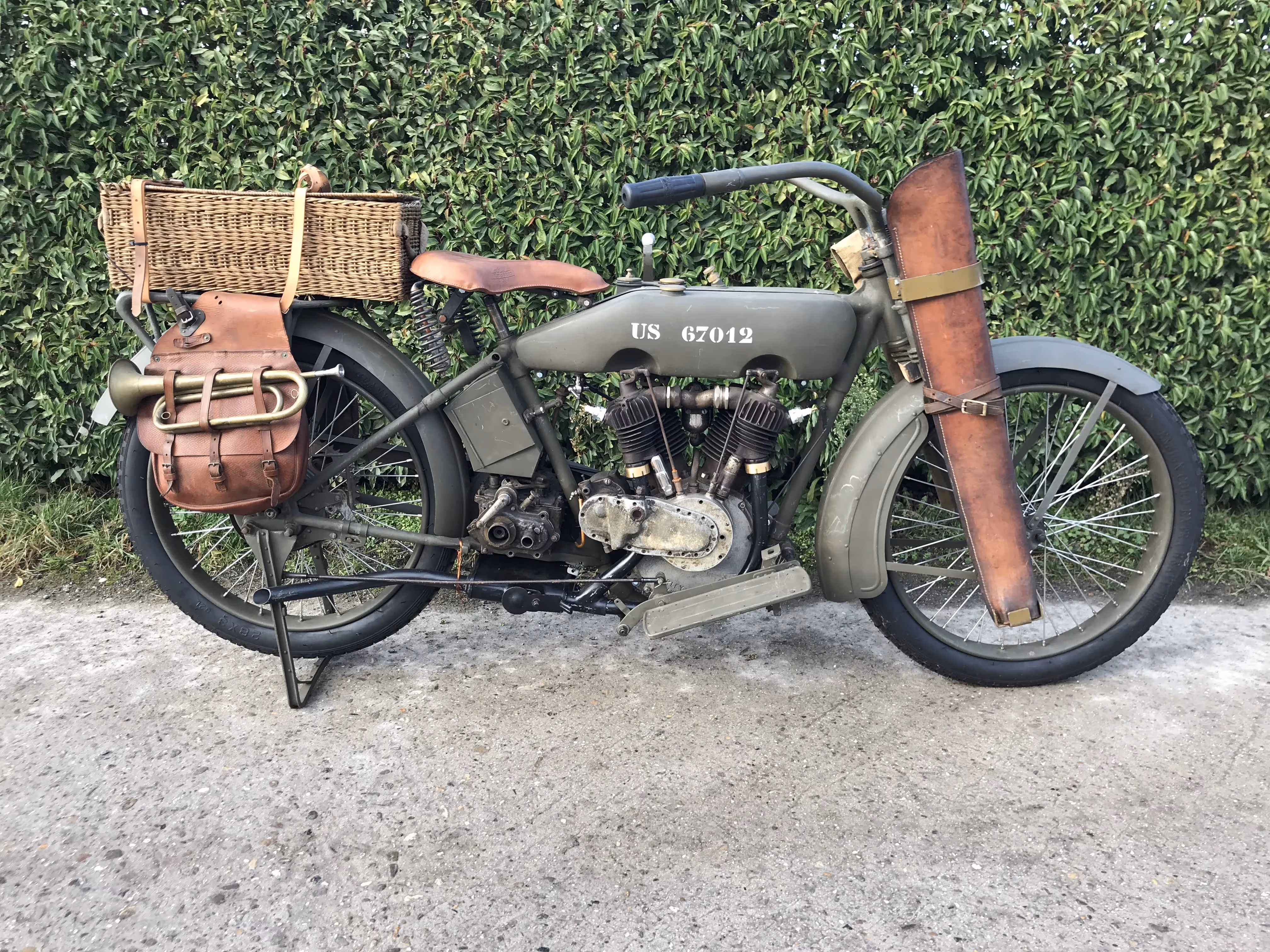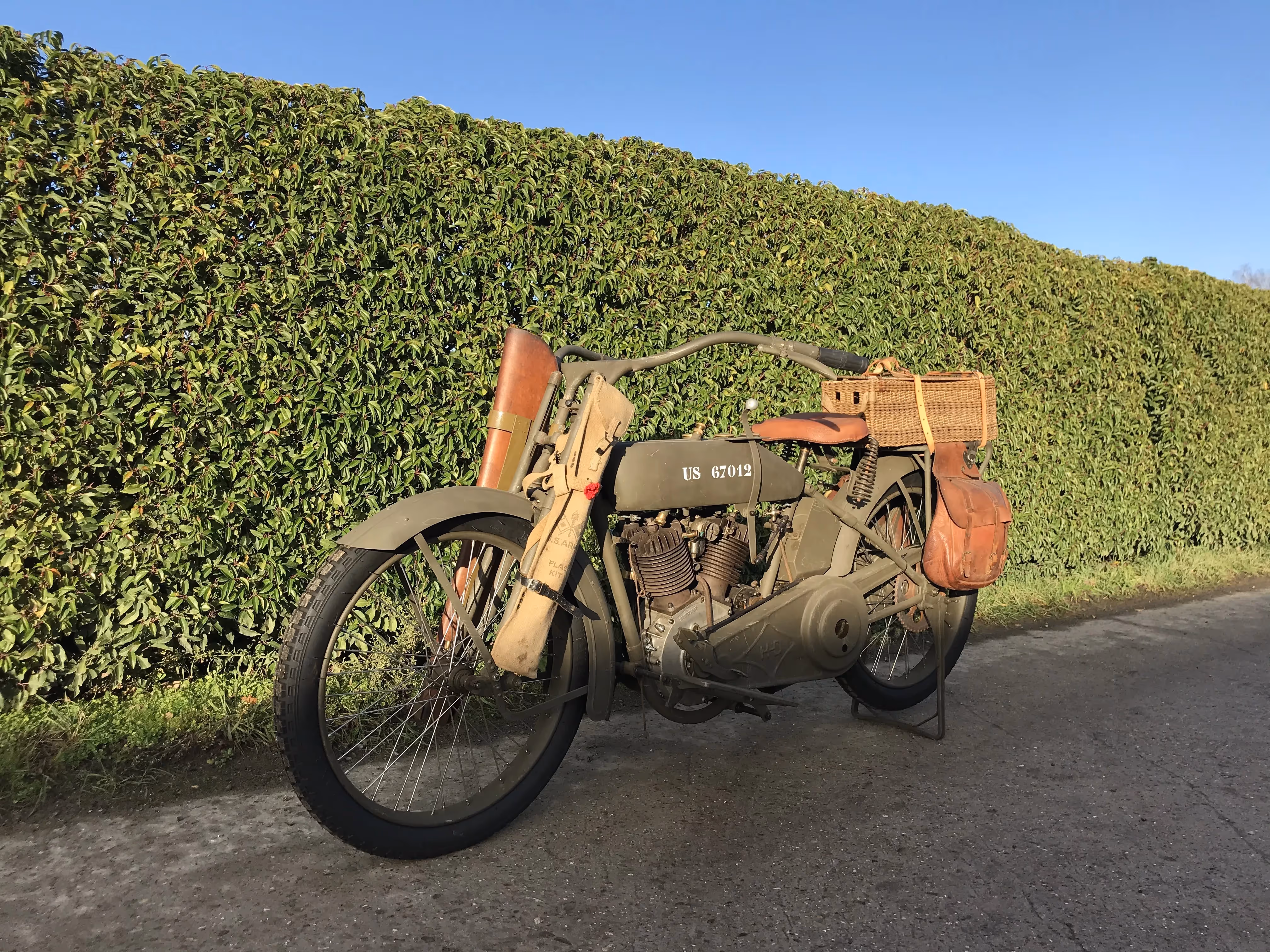 Extra zijn originele zadeltassen, geweerhouder en seinvlaggen van WOI. Deze hingen origineel tijdens de 2de wereldoorlog aan deze moto's, zie originele foto's.
