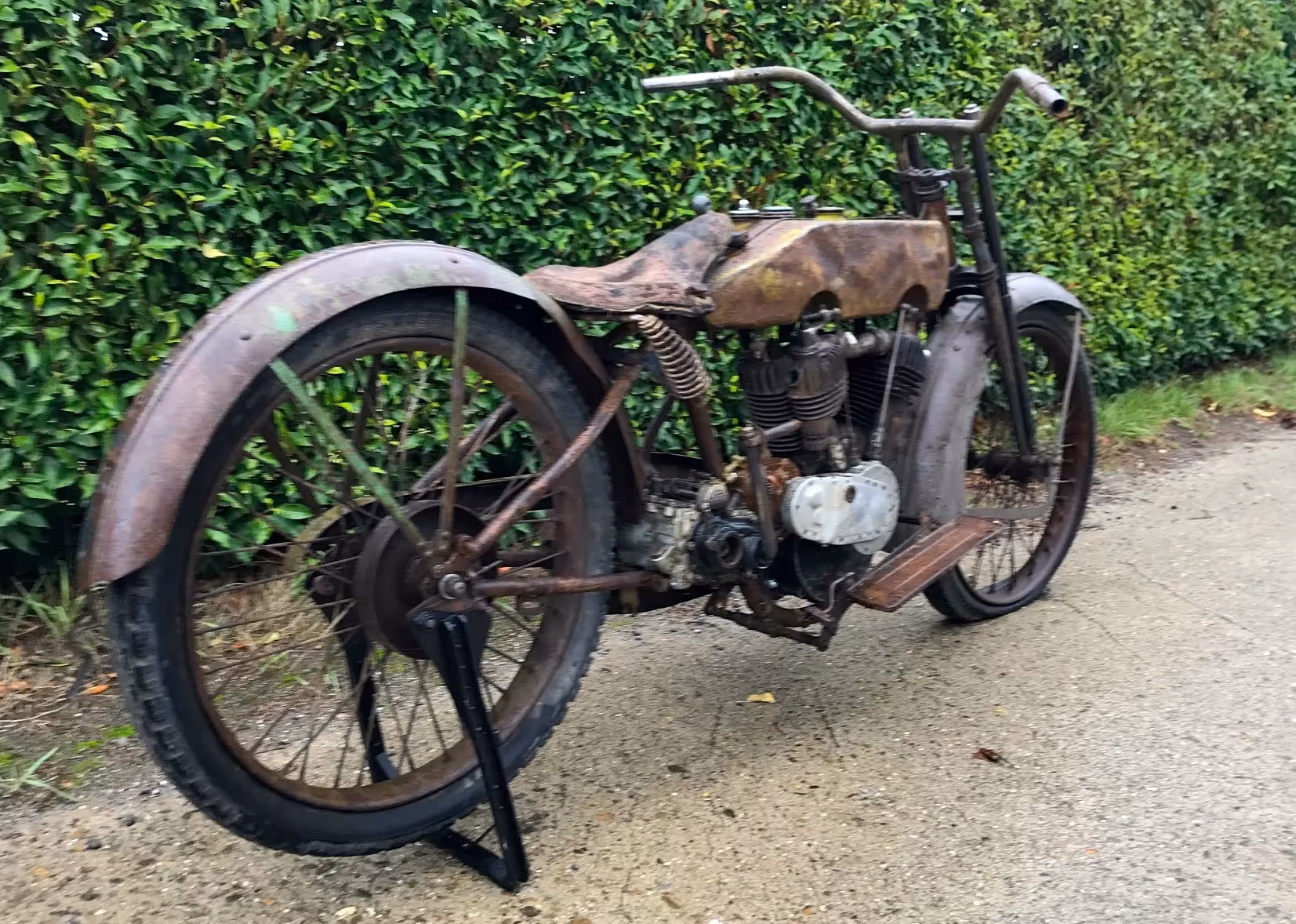Ongerestaureerde Harley 1000cc V-twin van 1919. Mooi project om volledig te restaureren of enkel een technische restauratie te geven en de mooie patina te behouden. Eventueel ook te koop met zijspan.