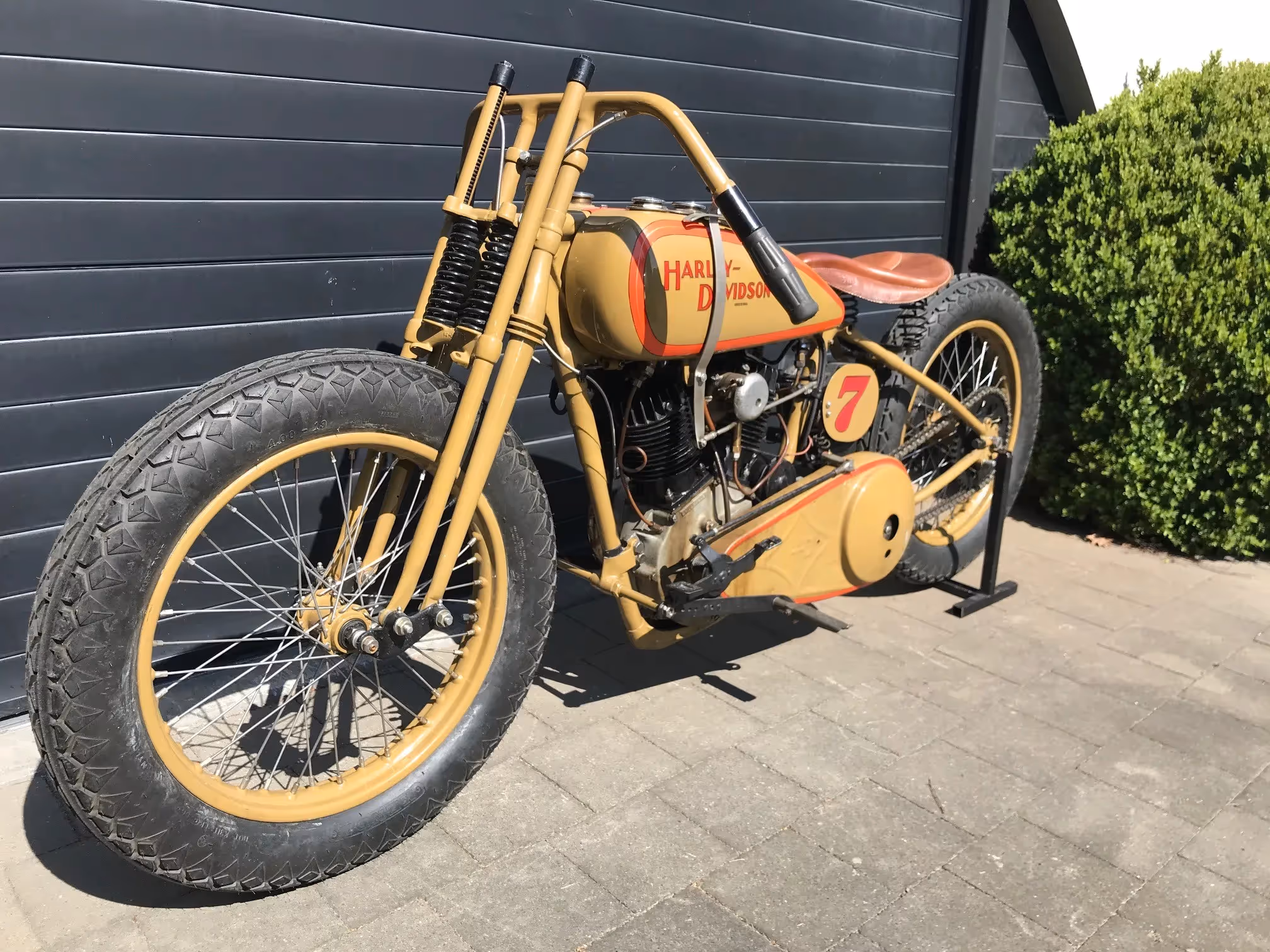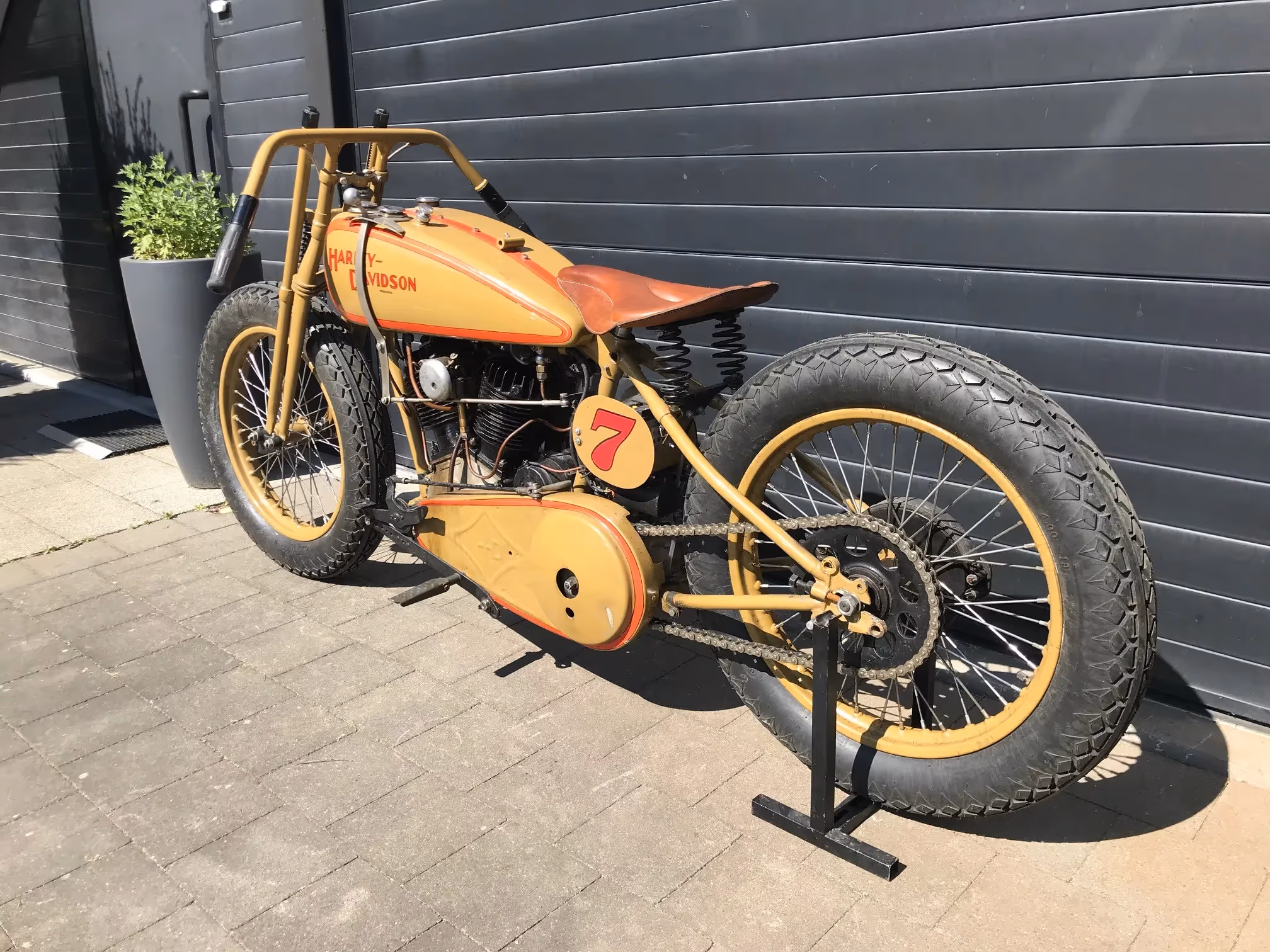 Harley-Davidson model 29JD. Dit is een 1200cc kop-zijklepper van 1929 die gebouwd is als racer. Motorfiets is enkele jaren geleden gerestaureerd en is vorig jaar nog eens volledig onder handen genomen. Is nu in goed rijdende toestand. Heeft vorig jaar meegereden op de kombaan van Montlhery (Vintage revival Montlhery), The Old race, Garden race, Flanders Field race,...