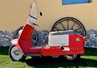 Amerikaanse Harley-Davidson Topper. Dit is een 165cc 2 takt scooter van 1961. Scooter is in originele staat en komt uit een oude bekende collectie. Moet terug opgestart worden. Scooter werd gestart met een touw zoals een grasmachine en heeft ook het Scootaway Drive systeem. Dit was een beveiliging dat de scooter vanuit stilstand pas kon rijden boven de 1800 rpm.