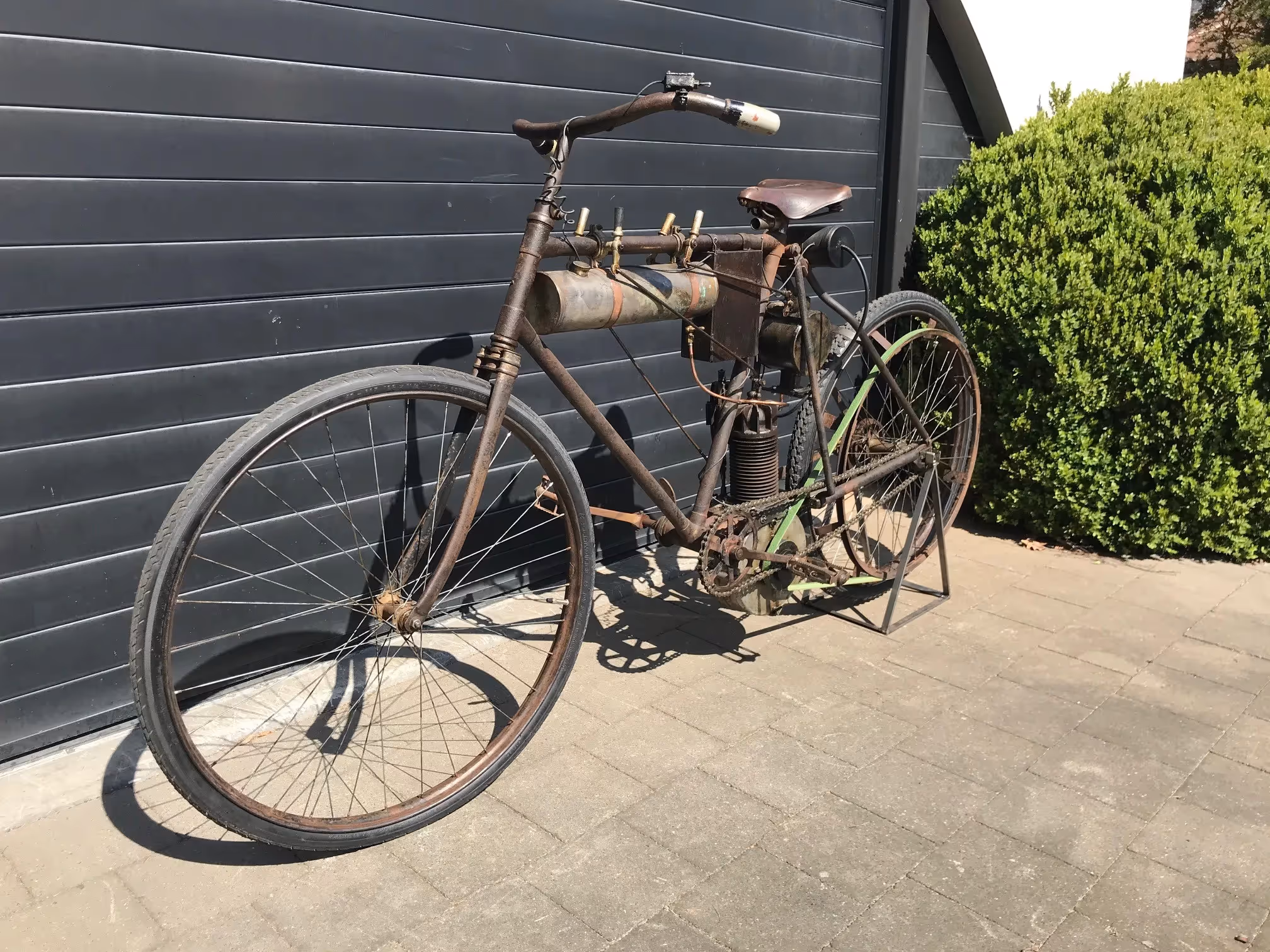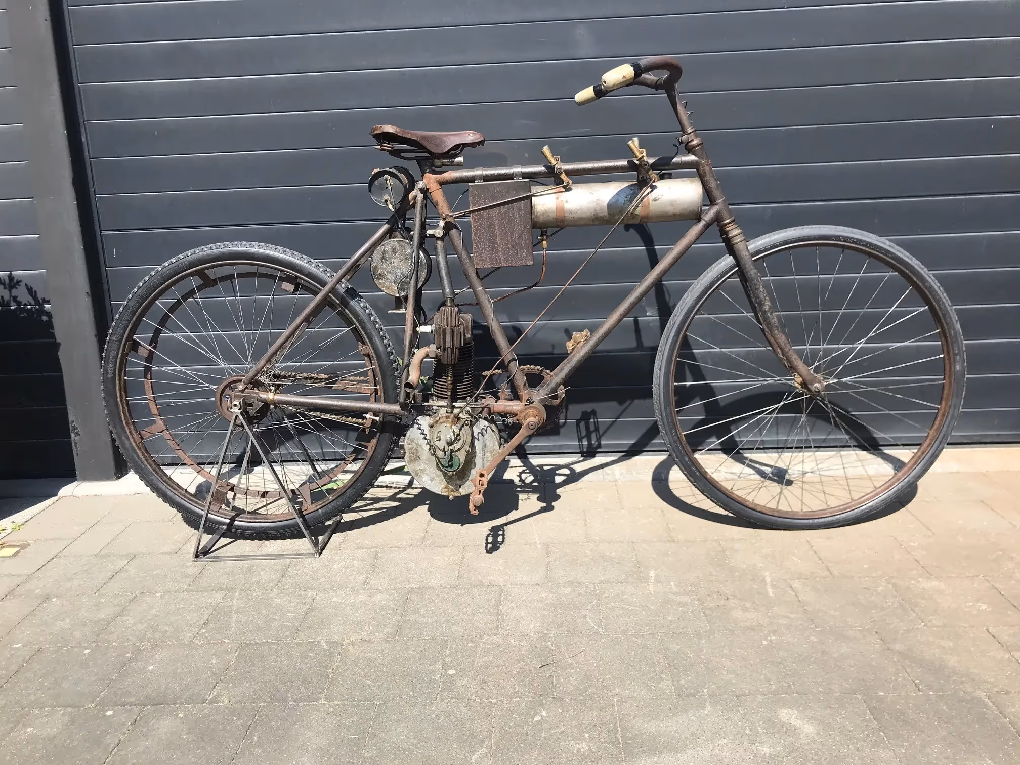 Vorig jaar kocht ik op een veiling in Frankrijk een motorfiets van het merk J.Bourgery met een onduidelijk datering. Ik voelde direct aan dat dit iets speciaals was. Na verder onderzoek bleek dit een Franse Bourgery te zijn van 1896. Is dit de oudste motorfiets ter wereld??? Hij heeft voor mij alvast alles wat een motorfiets moet hebben. Ouder dan een Werner, motor groot genoeg (330cc) om sneller te gaan als gewoon fietsen, en de motor is ingebouwd in het frame zoals we een motorfiets nu nog kennen. Is dit de "oudste motorfiets ter wereld"? Wie zal het zeggen, wie bepaald de definitie… ik ben er alvast heel blij mee.