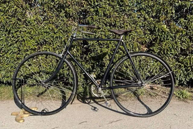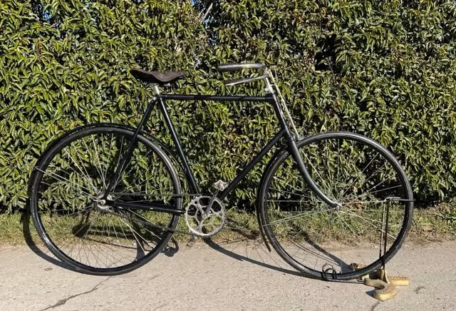 Le Globe was een groot Frans fietsmerk. Deze fiets is een vroege (1897) Model nog zonder binnenband en met recht achter frame.