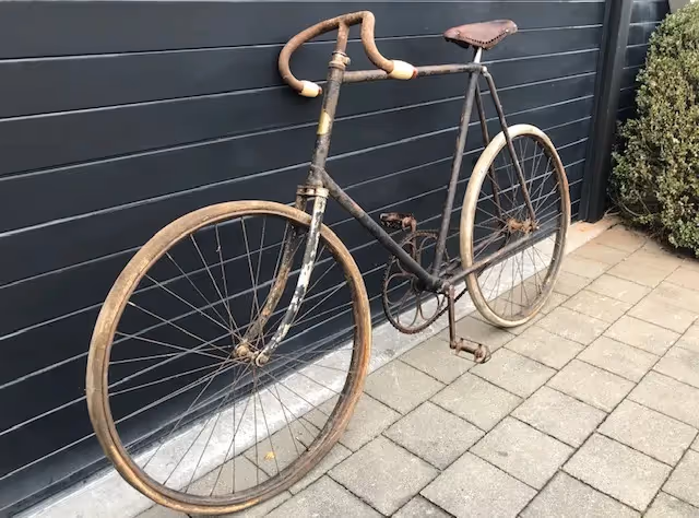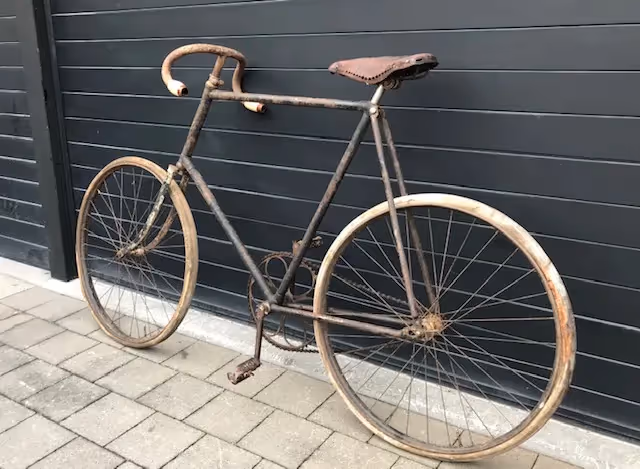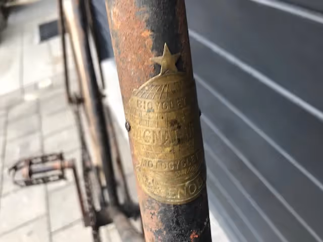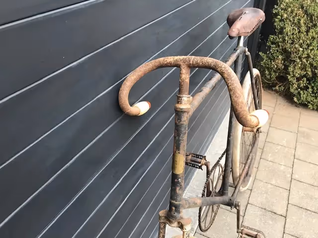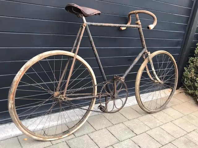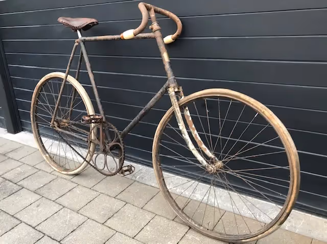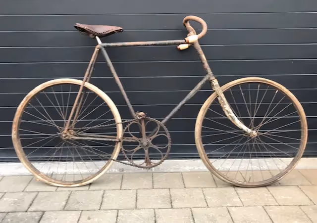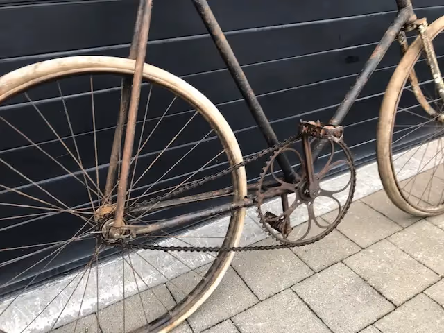 Vroege Franse Race/piste fiets van het merk Magnat Debon. Zeer groot tandwiel vooraan en smal race stuur om snelheid te kunnen maken op de piste. Speciale ketting is ook fabrikaat van Magnat Debon.