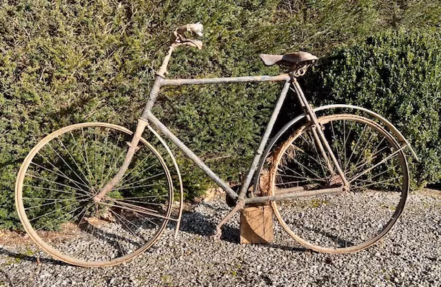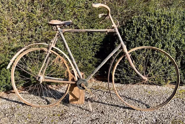 Het Franse fiets merk Metropole was het eerste merk ter wereld dat de kardan aangedreven fiets ter wereld produceerde. Dit is een originele fiets zo uit de schuur. Waarschijnlijk laatst gebruikt net voor de eerste wereldoorlog want het laatst taksplaatje dat erop hangt is van 1914. Voor de oorlog waarschijnlijk verstopt omdat alle vervoersmiddelen werden opgeeist door het leger. Na de oorlog blijven staan tot nu. Zelden zijn deze te vinden met de originele bescherm kappen over de tandwielen van de kardan. Met zeldzaam een groot kader en luxe kader model Veleda, dit is met de mooie sierlijke lugs.