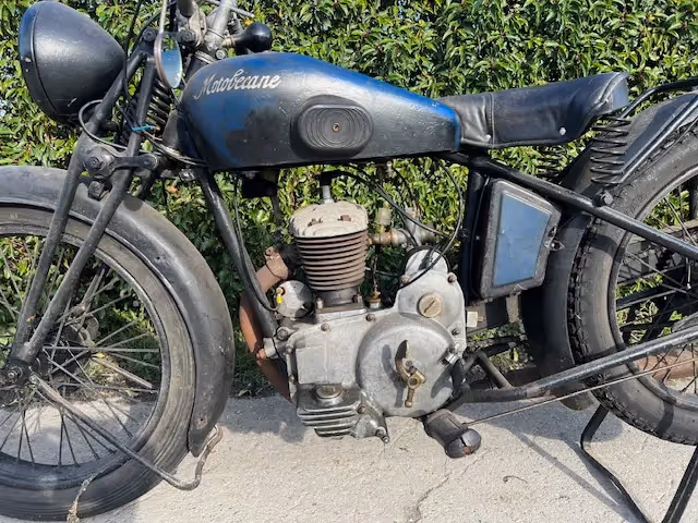 Franse Motobecane model B. Dit is een 250cc 4 takt van 1930 in originele staat. Motor is lopend.