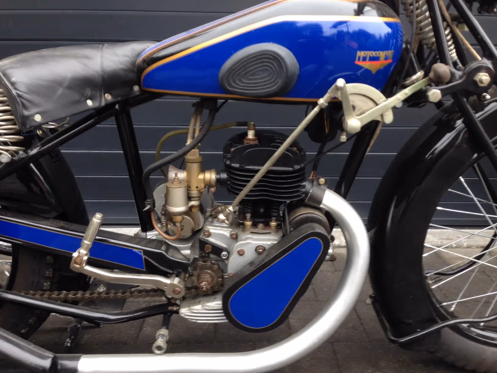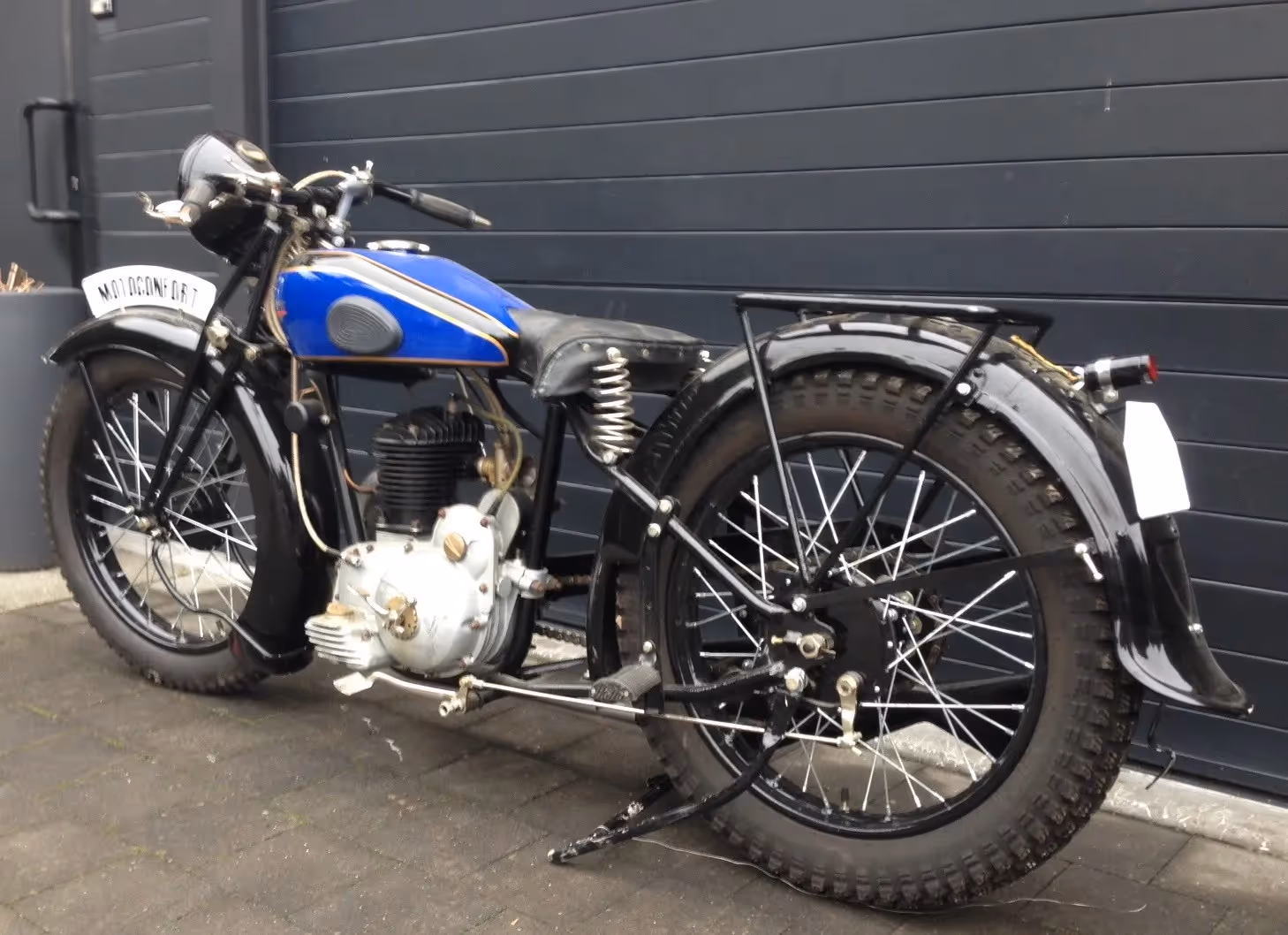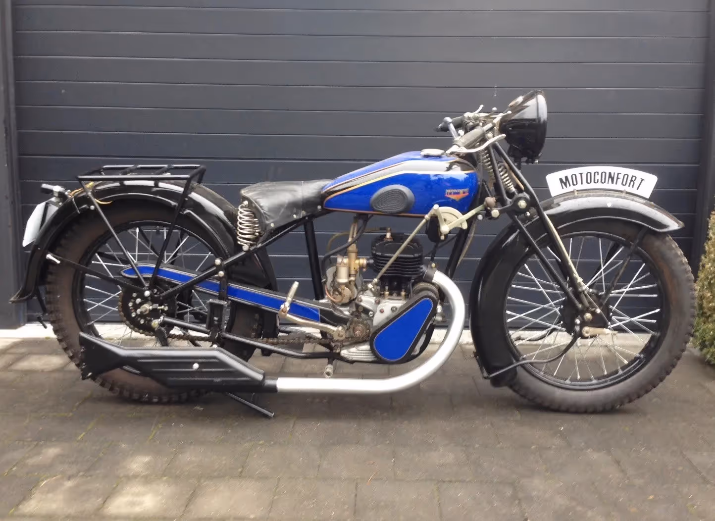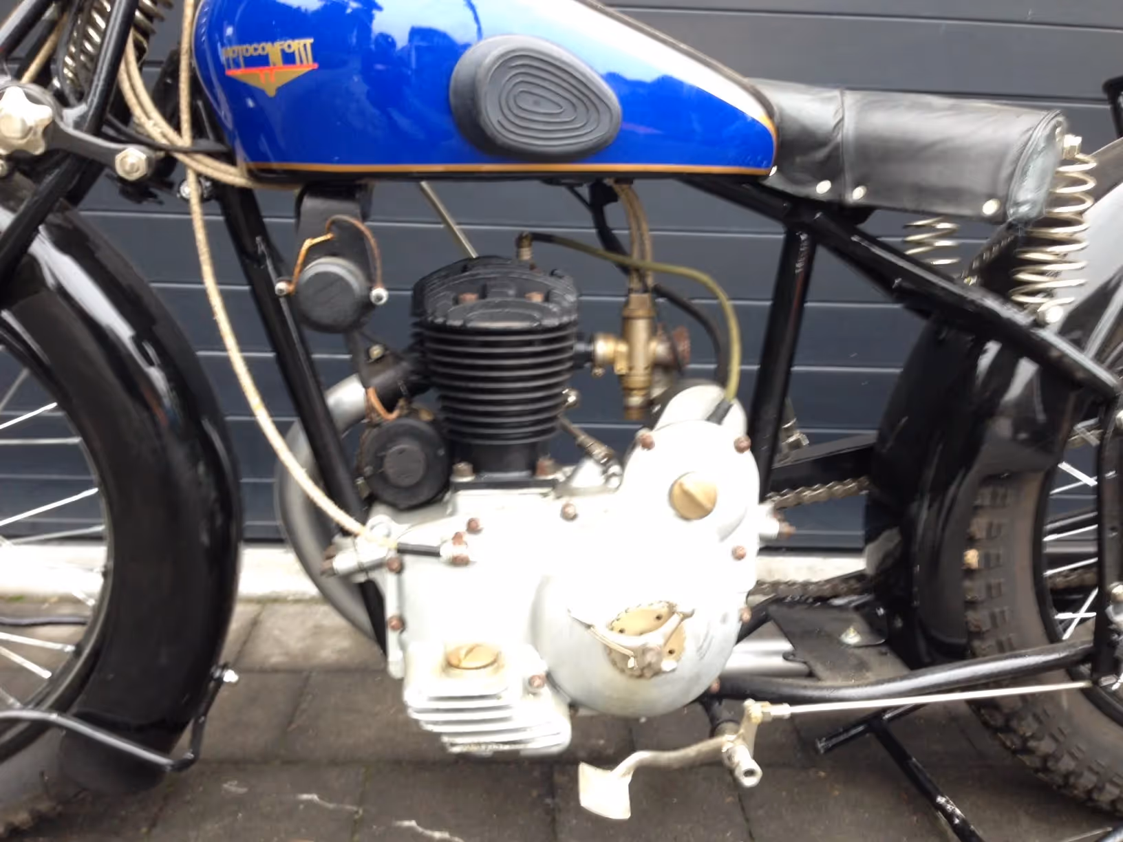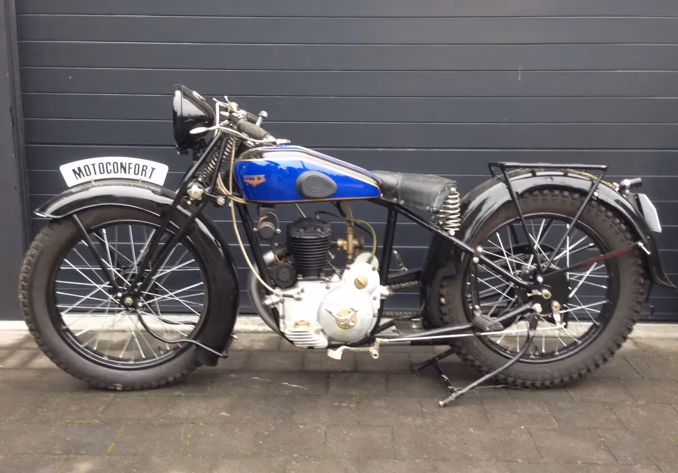 Oudere restauratie van een Franse Motoconfort (idem als Motobécane) model T33A. Dit is een 250cc zijklepper van 1933. Dit is het blok model B, het eerste 4 takt blok gemaakt door Motobécane - Motoconfort.