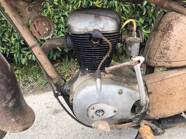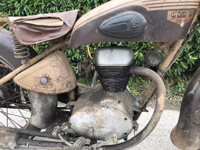 Franse Motoconfort model U54C. Dit is een 125cc 4 takt kopklepper van 1955 in mooi originele staat. Zo uit de schuur. Best niet restaureren, mooi opkuisen en enkel een technische restauratie en je hebt een prachtige 125cc kopklepper om oldtimer ritjes mee te rijden.