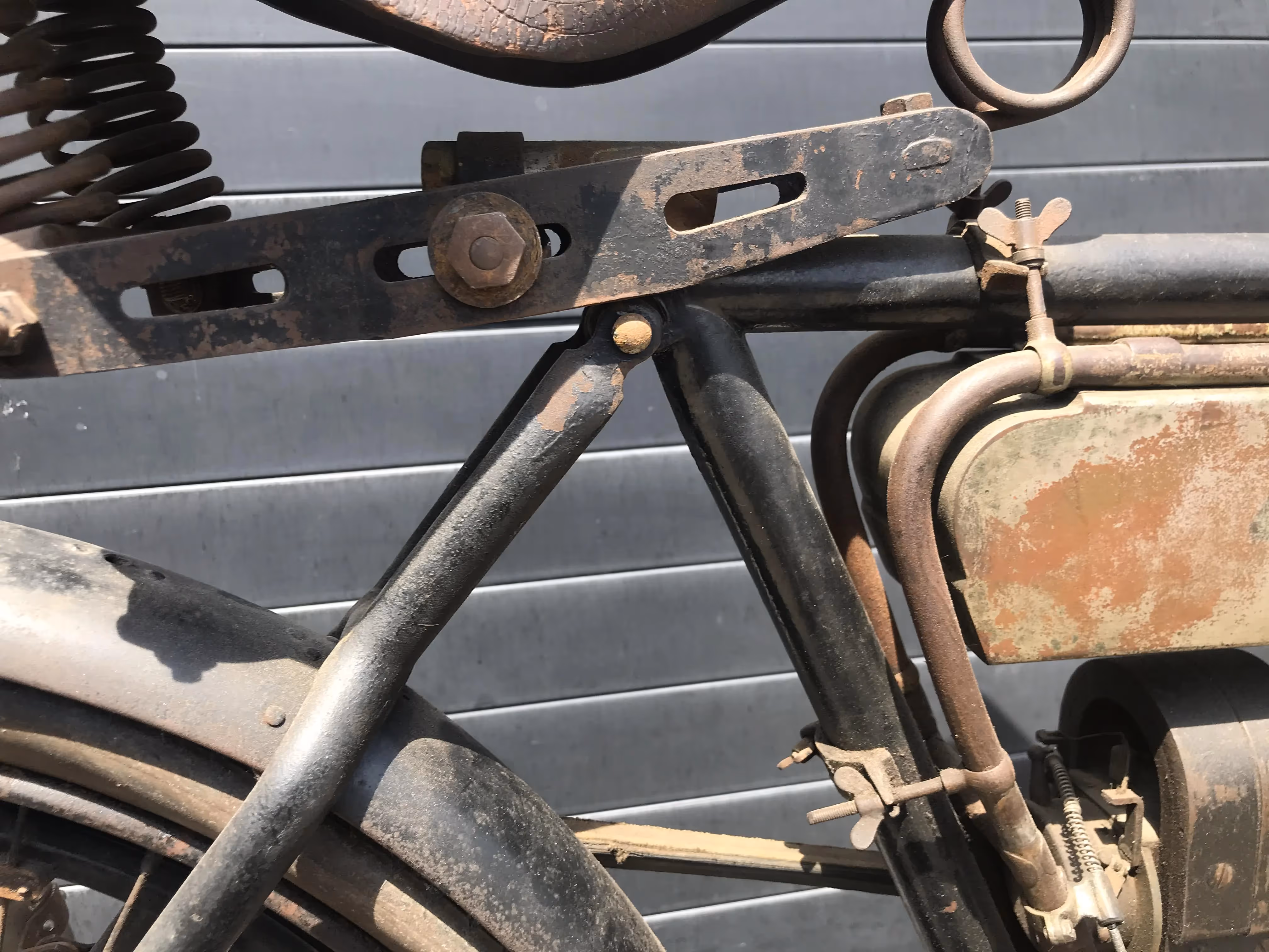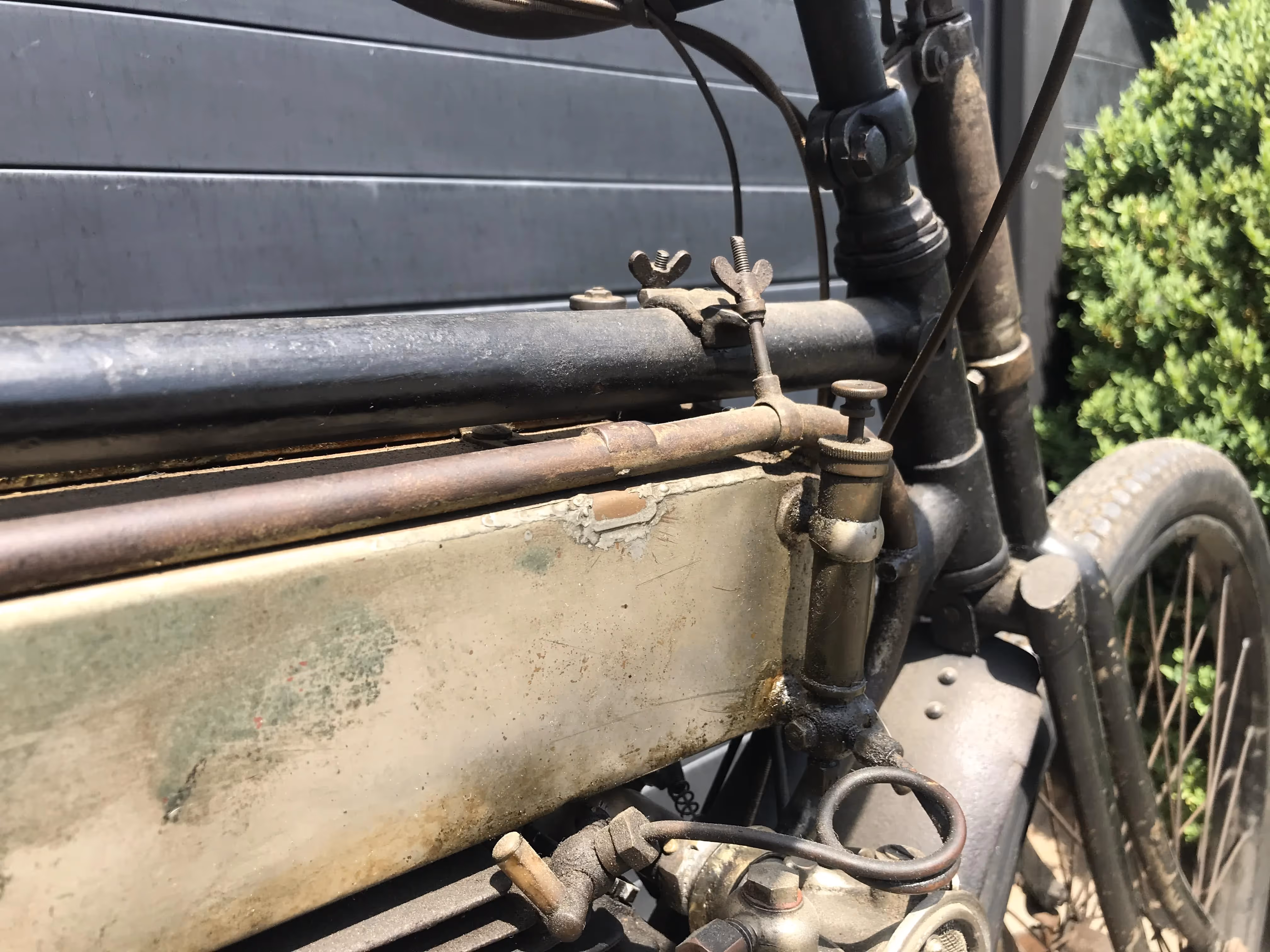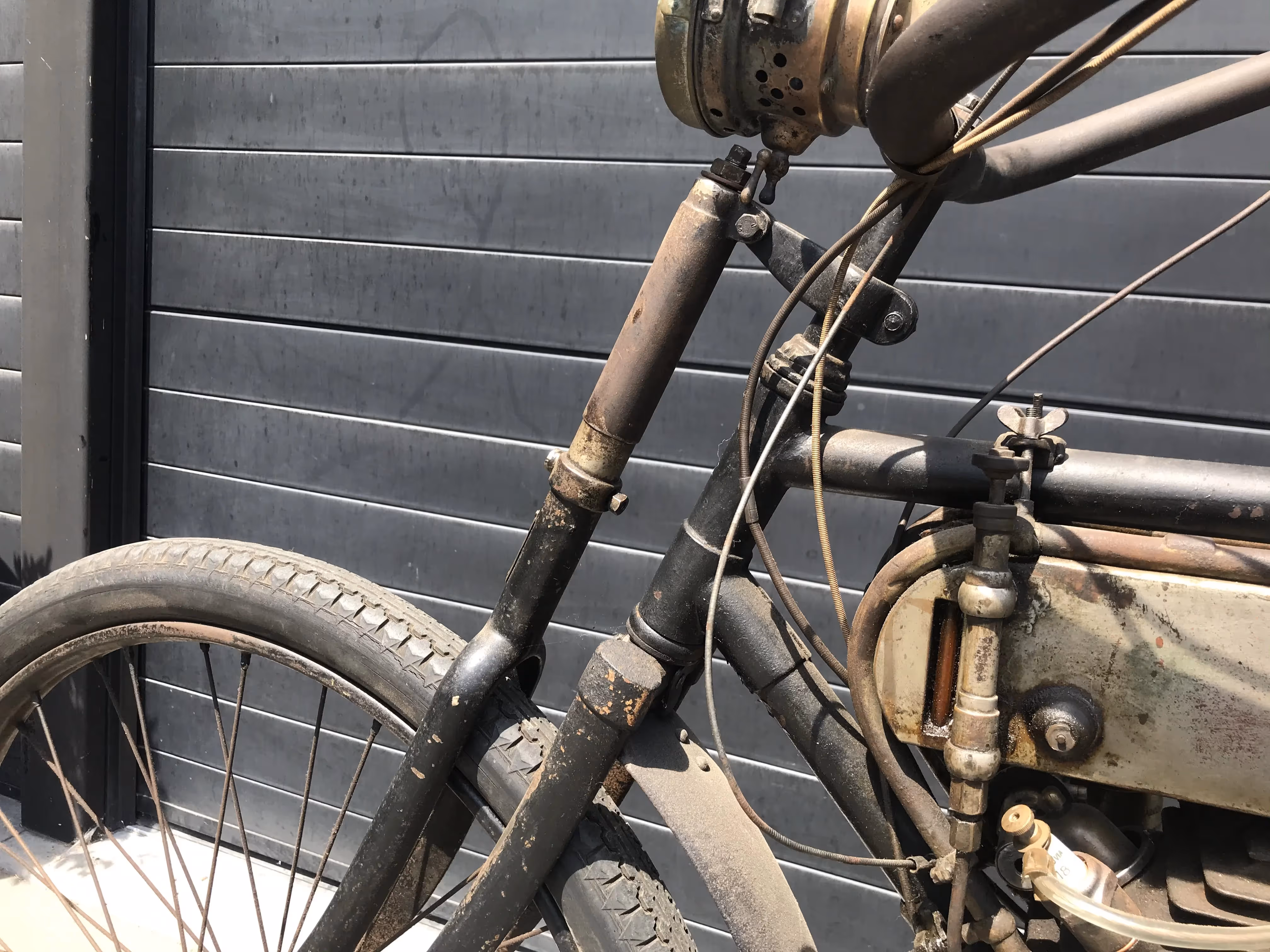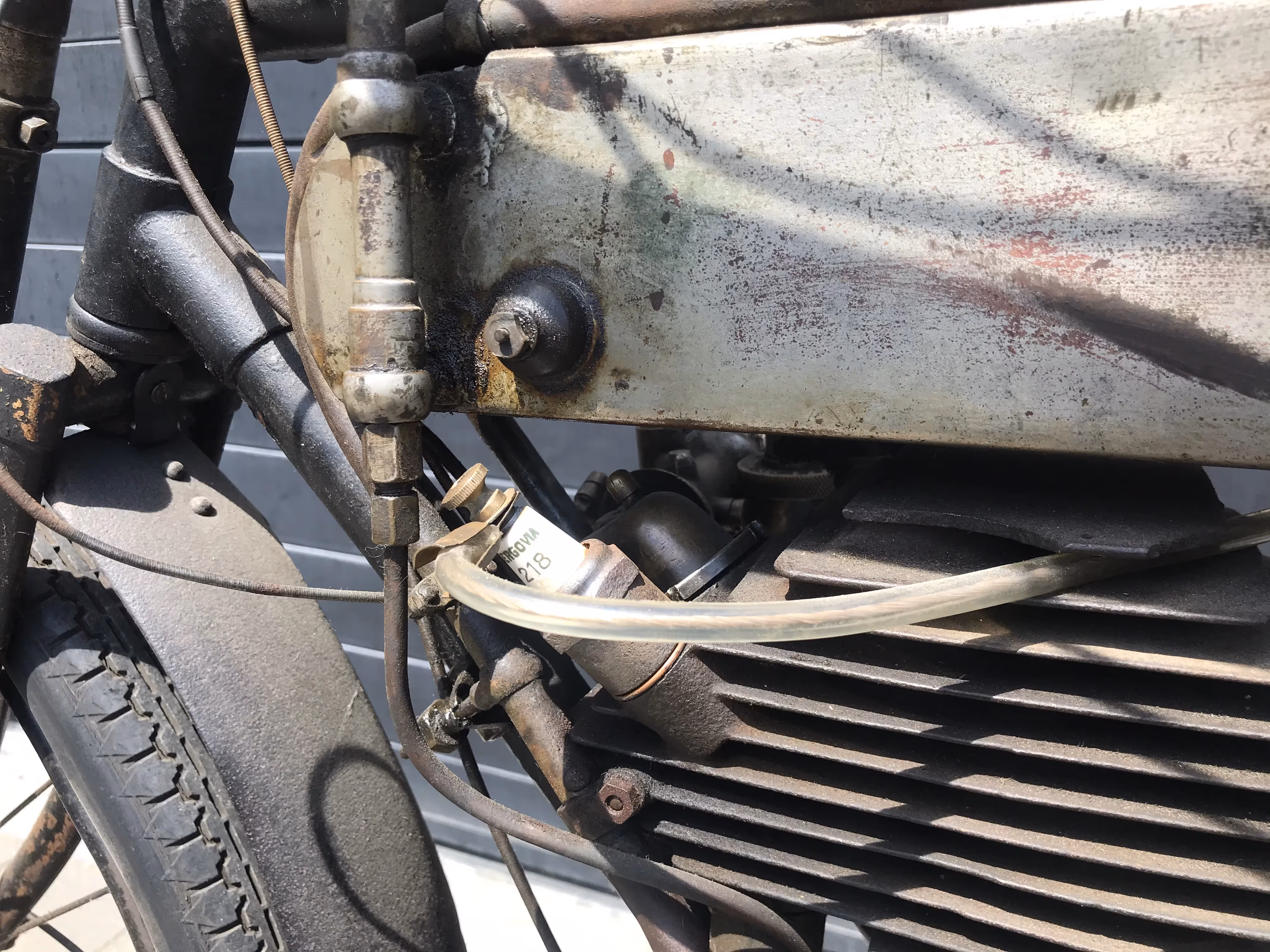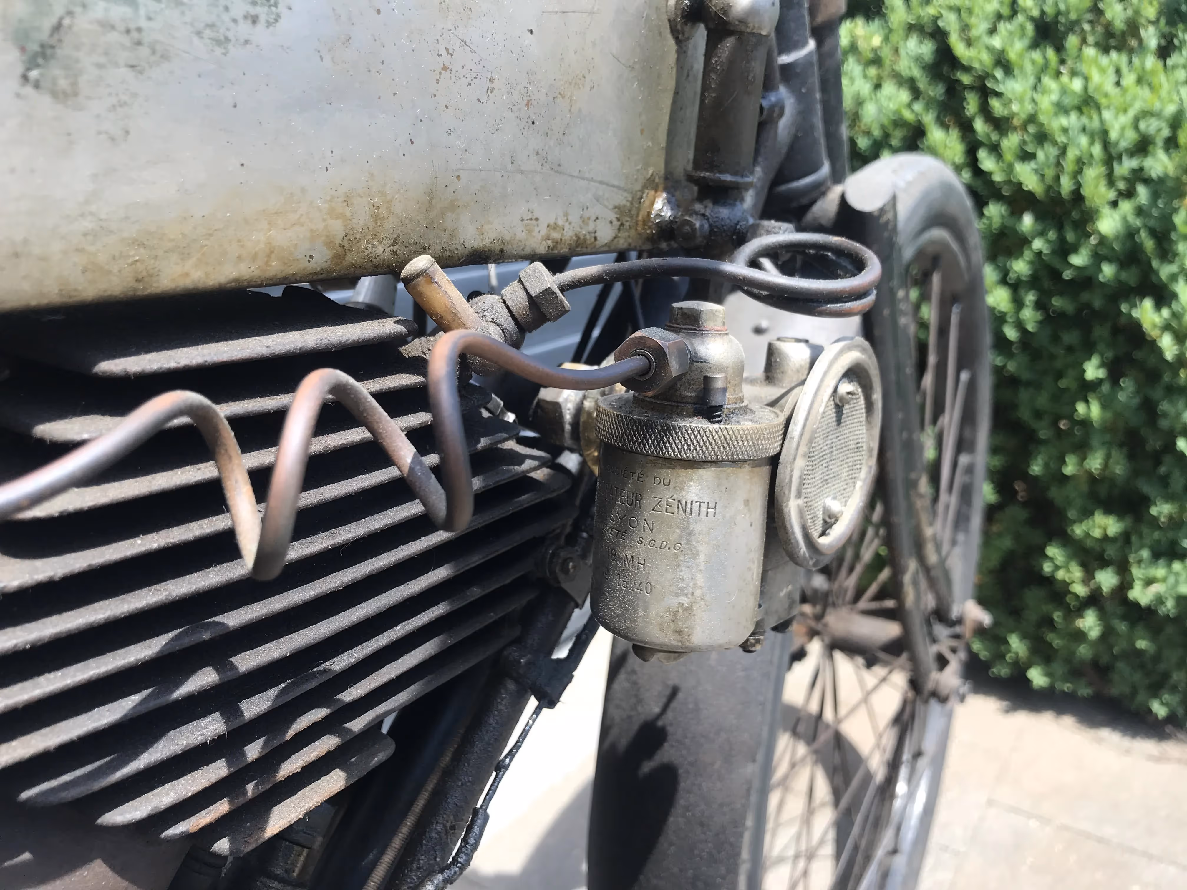 De hier aangeboden Motosacoche model A1 225cc van 1908 is in mooi originele staat en is niet in een gewone fiets ingebouwd maar in het speciaal door Motosacoche gemaakte motorfiets frame. Er staat een iets jongere carburateur op de motor maar de originele is erbij.