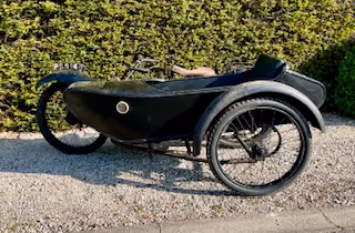 Neracar was een oorspronkelijk ontwikkeld in USA door Carl A. Neracher in 1917. De benaming was een woordspeling op zijn naam en op Nearly-a-Car omdat deze voorloper van een scooter heel veel bescherming gaf aan de berijder. Vrij snel werden deze ook onder licentie in UK gemaakt zoals deze. De motor was een 285cc 2 tact met rolaandrijving. Dit werd gedaan door op de uitgaande as van de motor een schijf te bevestigen die haaks een 2de schijf aandrijf die het achterwiel aandrijft. Met een hendel kon mijn deze 2de schijf bedienen zodat deze meer centraal liep of aan de buitenzijde en zodoende verschillende overbrengingen had. Ook speciaal was de naafbesturing van het voorwiel. Wat ook hun doodsteek was want in 1926 kwam er een Engelse wet dat motorfietsen ook een voorrem moesten hebben en dat kregen ze niet geregeld bij Neracar in combinatie met de naafbesturing. Deze Neracar heeft jaren in een Italiaans motorfiets museum gestaan. Er zijn momenteel maar 2 Neracar's bekend met een origineel zijspan.