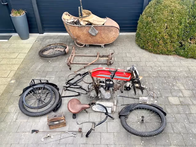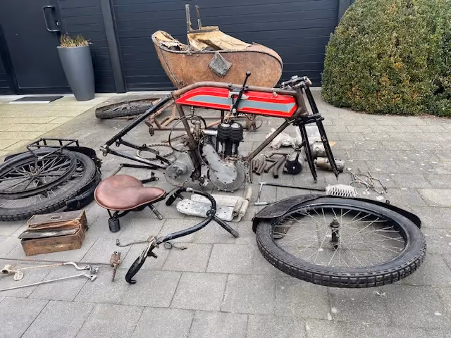 Project zou compleet zijn en motor en versnellingsbak zijn gereviseerd. Zeer mooie basis om een prachtige pioneer motorfiets te rijden. Motorfiets heeft ook de originele zijspan.