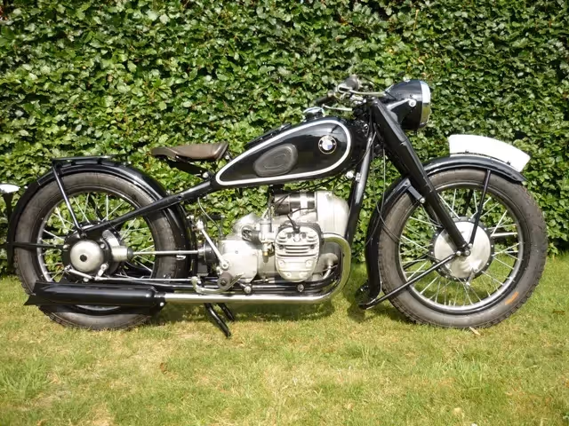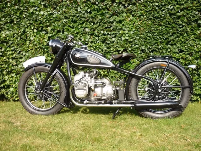 Deze zeldzame BMW model R6 van 1937 is een 600cc boxer zijklepper. Dit was het eerste model met telescopische voorvork maar nog zonder achtervering. Zeer betrouwbare sterke BMW die mooi is gerestaureerd. Volledig perfect werkende staat. Let op de speciale voorvork die bovenaan regelbaar is. Dit model is enkel in 1937 gebouwd en er zijn er maar 1.850 van gemaakt.