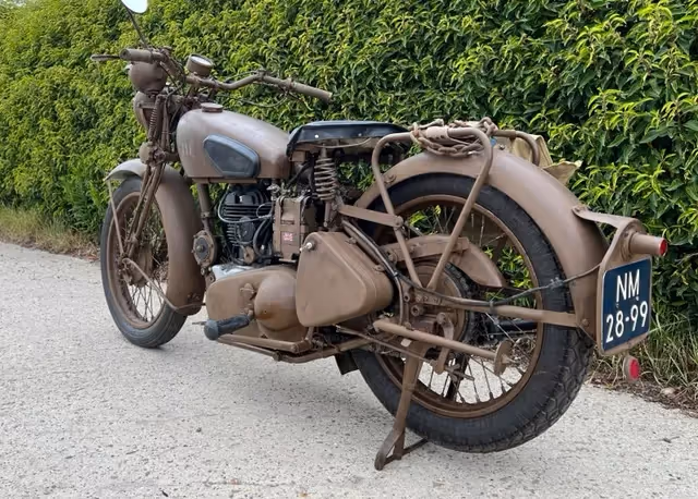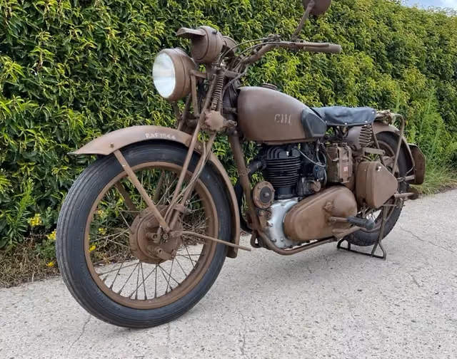 Engelse Royal Enfield model WD/CO van 1944. DIt is een 350cc kopklepper die volgens het leger contract 14219 geleverd is in 1944 aan R.A.F.