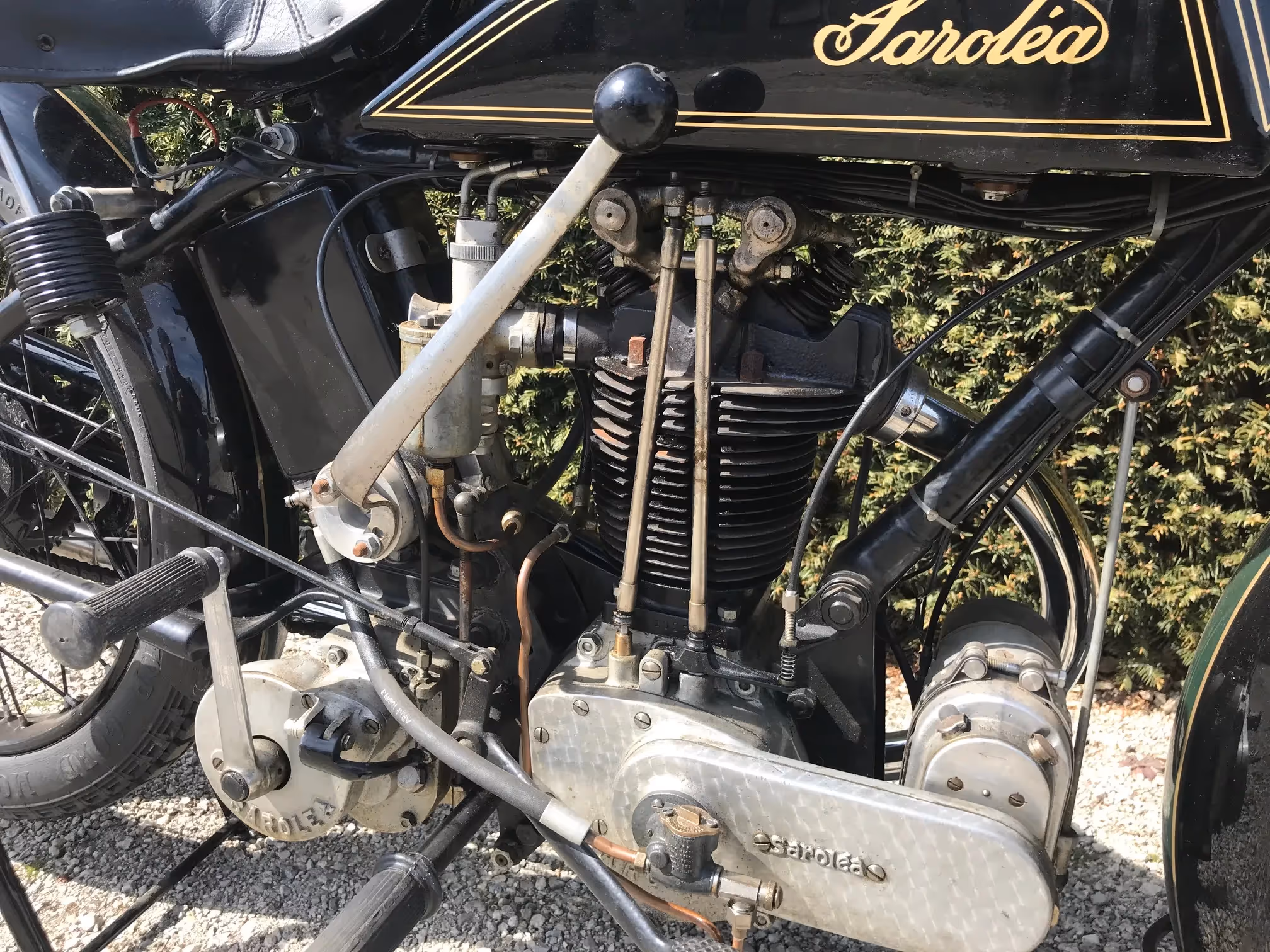Oudere restauratie van een Belgische Saroléa 25L. Dit is een 350cc kopklepper van 1927. Zeldzame Belgische flattanker met kopklepper blok. Deze motorfiets kan nog iets verbeterd worden omdat enkele kleine details fout zijn zoals manetten,... Maar technisch zeer goed. Motor start en loopt zeer goed. Zeer snelle sportieve motorfiets. Heeft afgelopen jaar nog meegereden in Frankrijk op Normandy Beach race.