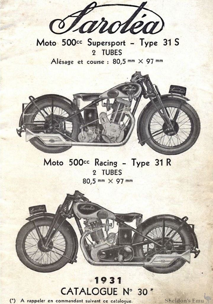 Belgische Saroléa model 31R. Dit is een 500cc kopklepper Racing model van 1931.
