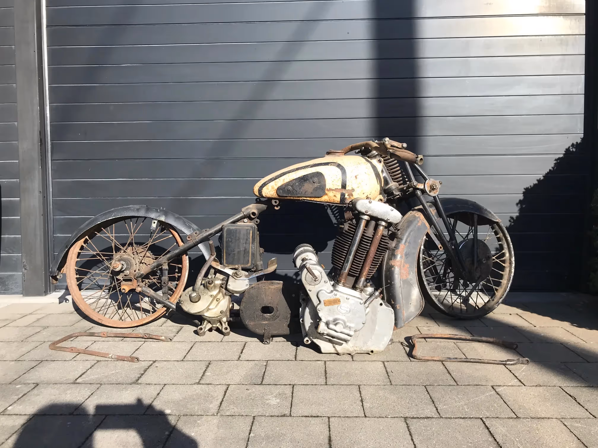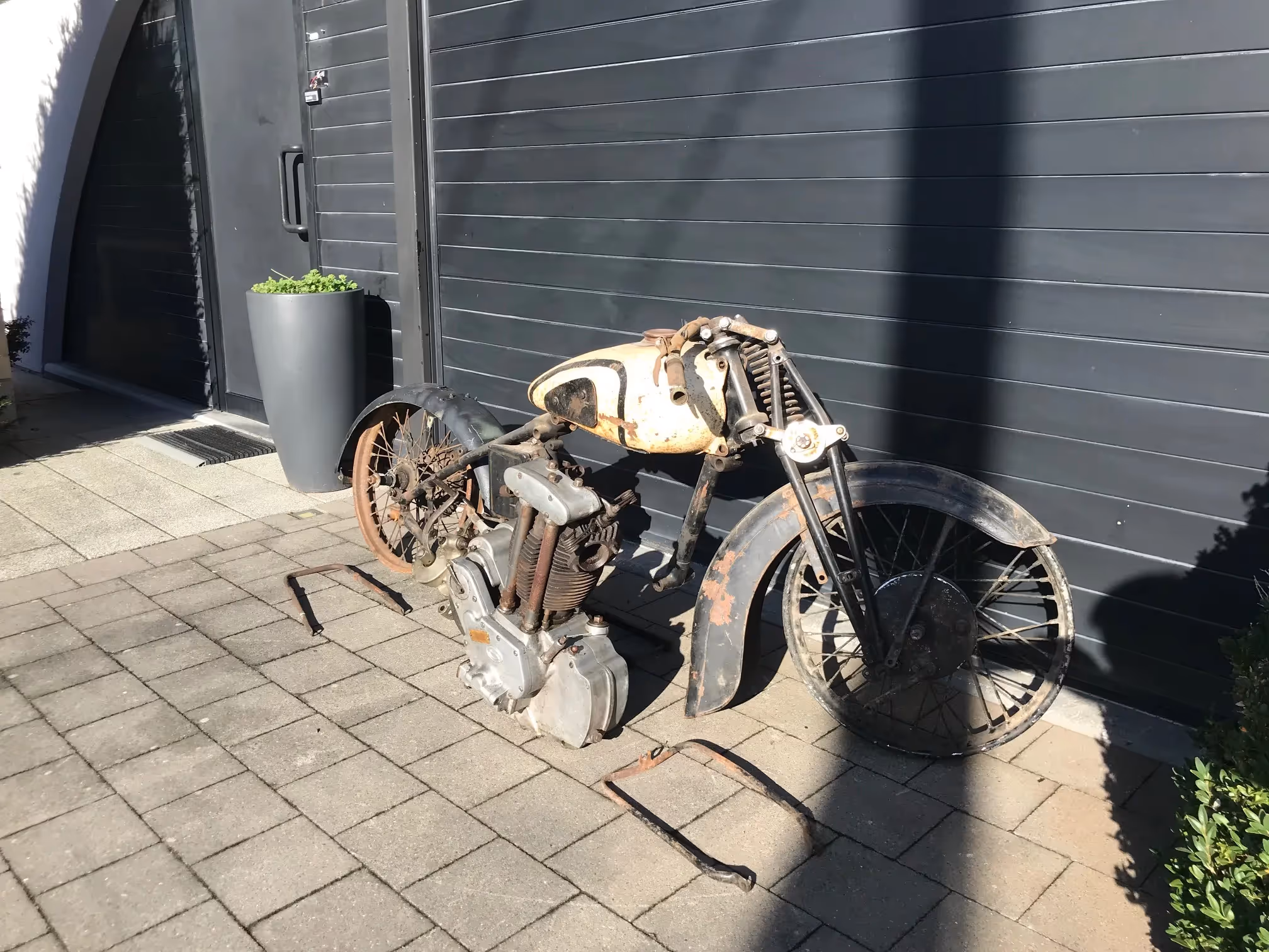 Belgische Saroléa 37S. Dit is een 600cc kopklepper sport motorfiets met haarspeld klepveren.