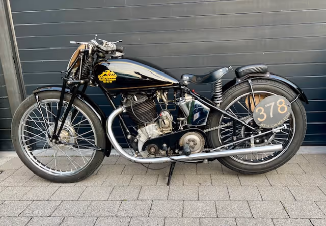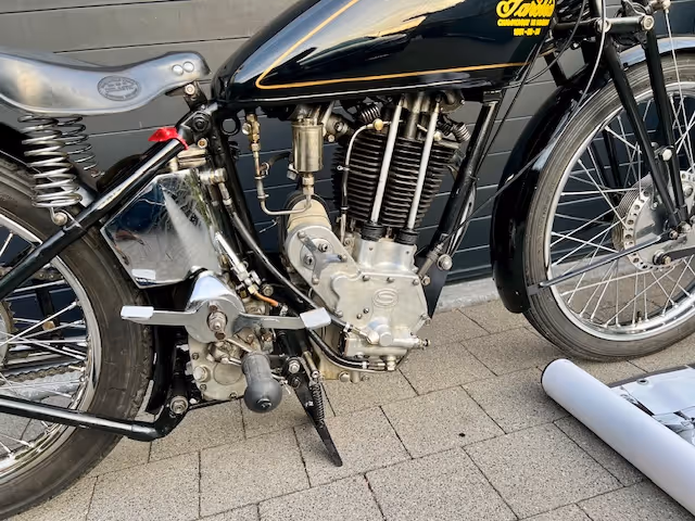 Belgische Saroléa Monotube racer 500cc van 1934. Dit was de racemotorfiets van F. Venin uit Frankrijk. Motorfiets is volledig gerestaureerd en al getest op het cirquit van Dijon.
