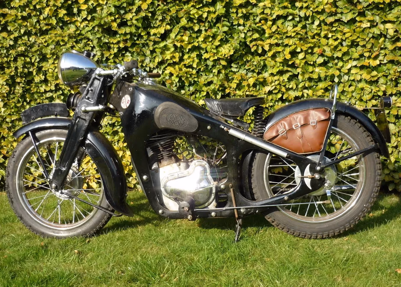 Oudere restauratie van een Franse Gnome & Rhone model Super Major. Dit is een 350cc kopklepper met geperst frame.