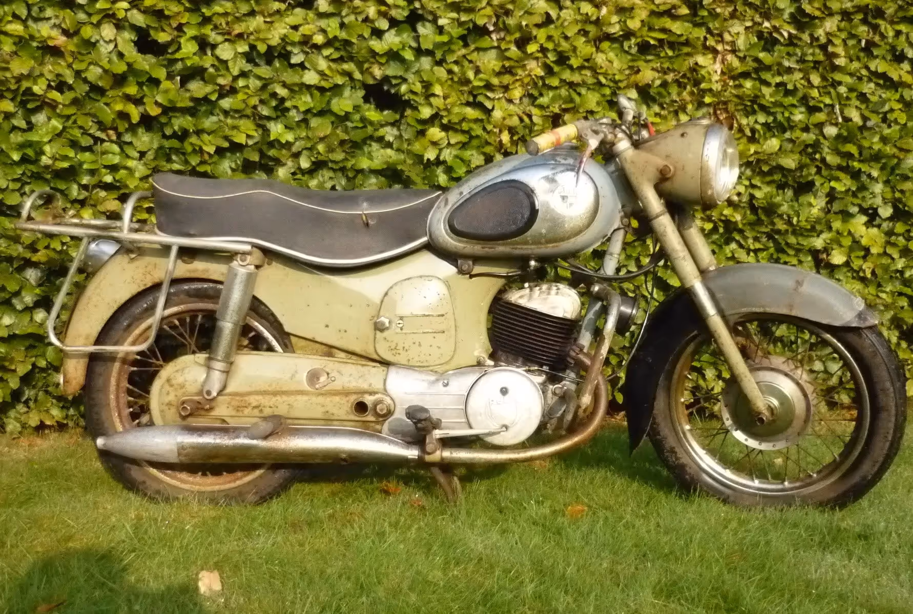 Mooie Puch SV 175 van 1957. Dit is een 175cc 2 tact met dubbelzuiger. SV staat voor Schwingarm Volnaben bremzen. Deze moto is mooi compleet en origineel, motor zit los en heeft goede compressie en versnellingen laten zich nemen.