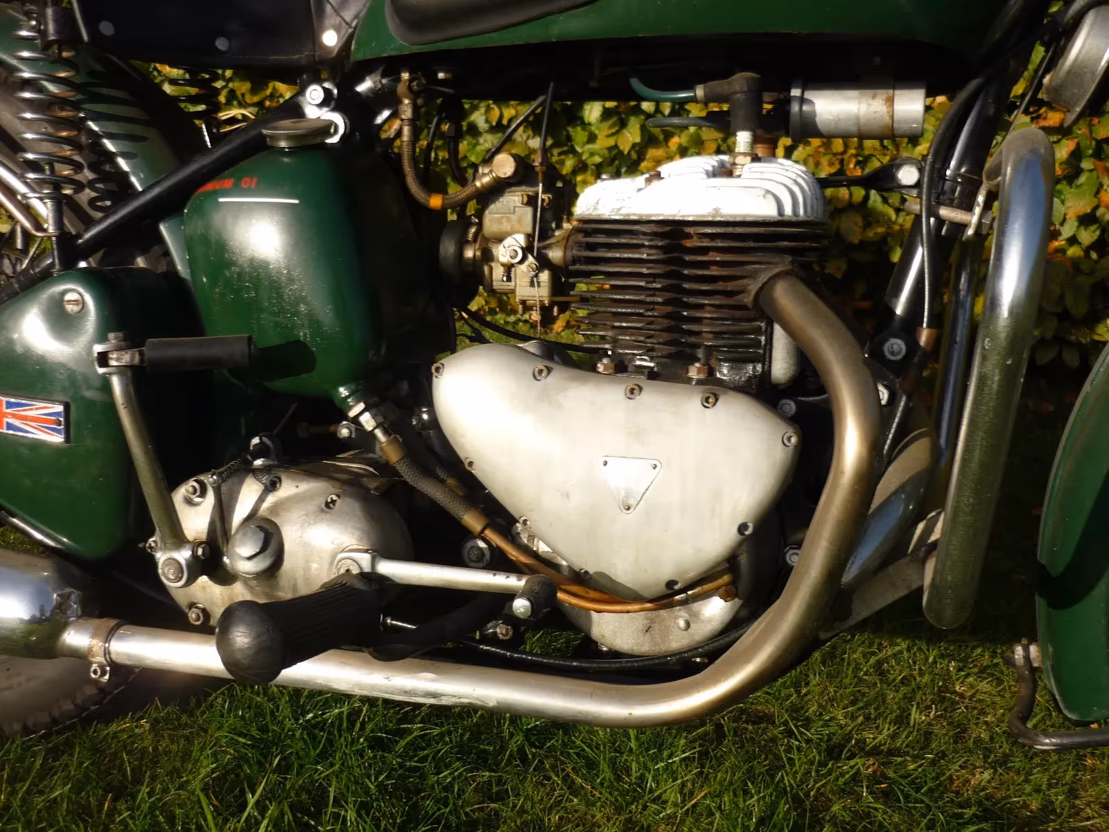 Engelse leger Triumph model TRW. Dit is een 2 cilinder zijklepper van 1958.