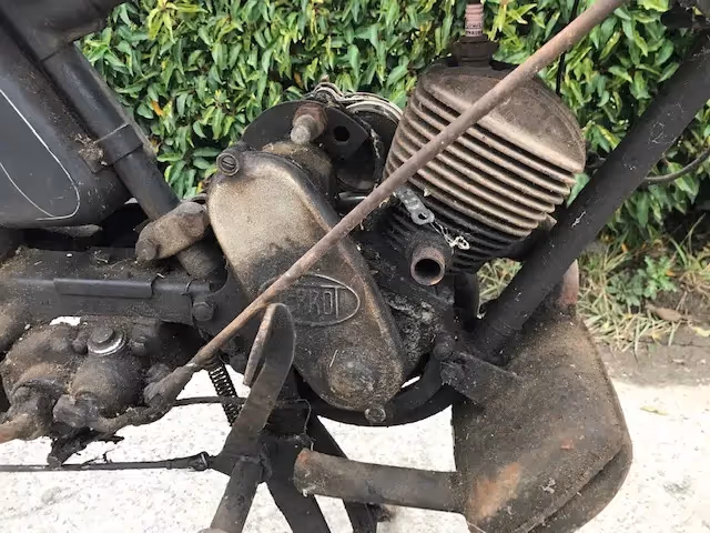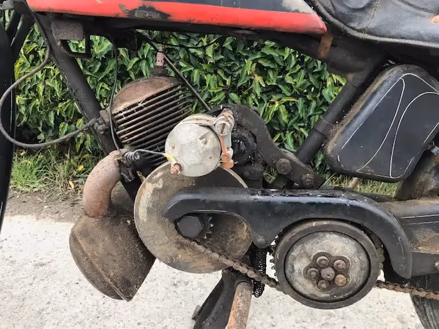 Benzinedop en carburator ontbreken maar de rest is nog in zeer goede staat. Mooi om op te kuisen en zo origineel te laten. Motor heeft goede compressie.