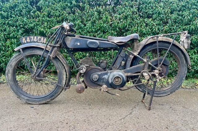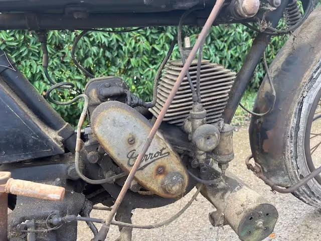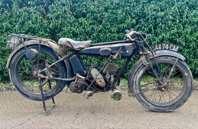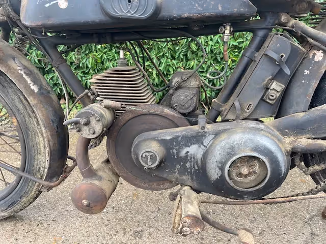 Mooie Franse Terrot model FSS. Dit is een 250cc 2 tact van 1927 met Terry zadel en TT stuur. Volledig origineel zo uit de schuur! Zelden kom je deze zo tegen, nog niet opgeblonken. Motor heeft zeer goede compressie. Prachtige motorfiets met volgens mij weinig werk aan om zo met mooie patina te rijden.