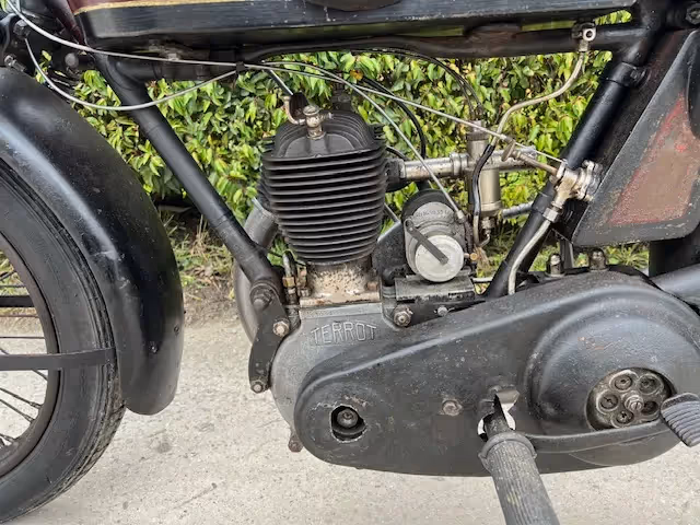 Franse Terrot 350cc zijklepper, komt zo uit de schuur; Opgekuist en opgestart. Mooi origineel en 1 x trappen en mooi lopend.