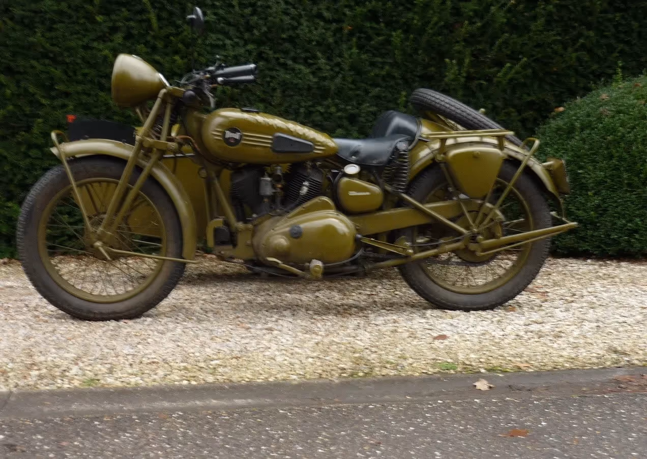 Franse oorlogs moto van WWII. Terrot 750cc 2 cylinder in V in perfect rijdende staat.Zeer zeldzame moto.