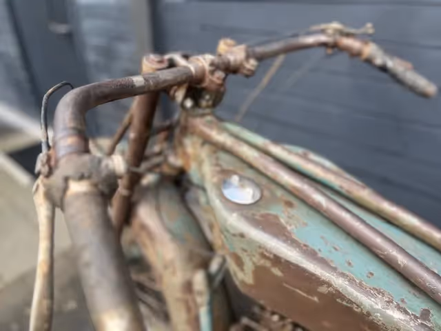 Victoria gebruikte de BMW blokken die ook in de Helios (die door BFW - Bayerische flugzeug werke - werden gemaakt ) motorfietsen zat maar de Victoria werd meer geliefd door het publiek. Toen BMW onder hun naam eigen motorfietsen ging maken werden er geen blokken meer geleverd aan Victoria. Hierdoor heeft Victoria het zijklepper blok van BMW verder ontwikkeld en zo ontstond de KR2 met een kopklepper blok nog steeds in de lengte richting en niet zoals de BMW dwars geplaatst. De KR 6 is een verdere ontwikkeling van deze motorfiets eerst nog te verkrijgen als flattanker en later met een zadeltank. Deze motorfiets hier is zo'n vroege flattanker nog in volledig originele staat. Een echte schuurvondst, nooit gerestaureerd, nooit verprutst. Na herontdekken in een schuur heeft deze nieuwe banden gekregen en zijn er enkele kabeltjes vernieuwd. Motor zit los en alles ziet er goed uit.