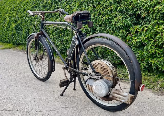 Duitse Wanderer Saxonette 60cc. In 1937 stelde Fichtel und Sachs op de automobiel tentoonstelling hun 60cc motor voor die in het achterwiel zit. Dit was direct een succes en werd door zeer vele merken gebruikt. Zo ook in deze Wanderer.