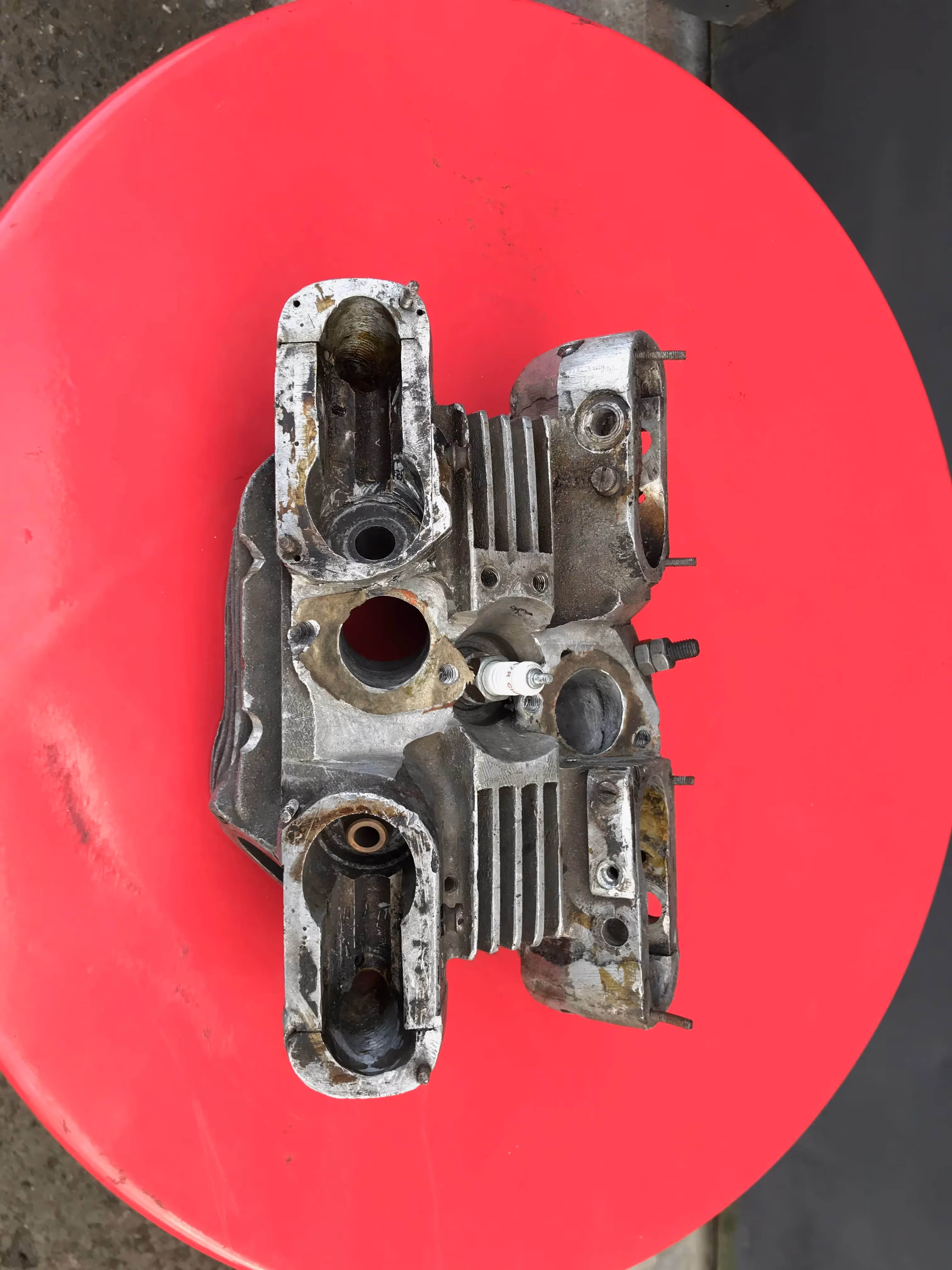 Gemaakt en ontworpen door de Oostenrijkse ingenieur Apfelbeck. (...- 1987). Hij heeft gewerkt voor vele auto en motorfiets merken zoals BMW, Puch, Rotax, KTM,... Maar je kon bij hem speciale raceblokken bestellen die nooit in grote productie gingen. Dus echt unieke blokken. Hij had ook zijn speciale cilinderkop met speciale plaatsing van de kleppen gepatenteerd. Dit was een sferische kop. Dit is een bolvormige verbrandingskamer waar de kleppen schuin in staan. Ook waren de kleppen diagonaal geplaatst. Dit wil zeggen op aan 1 zijde zat een uitlaat en een inlaatklep. Normaal zitten achteraan 2 inlaatkleppen en vooraan de 2 uitlaatkleppen. Bij racer waren de inlaatkleppen grote als de uitlaat dit gaf dat de kant van de inlaat de kop zwak was door de grote kleppen. Door nu een kleine uitlaatklep naast een grote inlaat te zetten was deze kop steviger en was er plaats om nog grotere kleppen te zetten. Door de dubbele carburator en het valstroom systeem passeerde de inlaatgassen de uitlaatklep en werd deze zo mee gekoeld. De nokken zijn conisch.