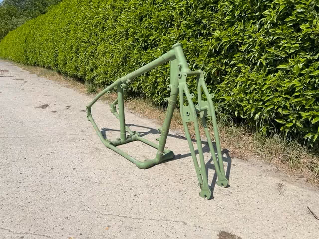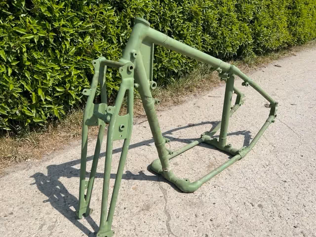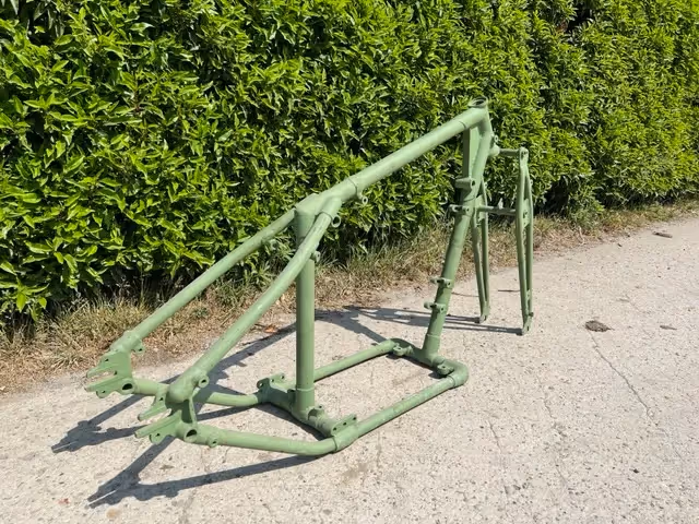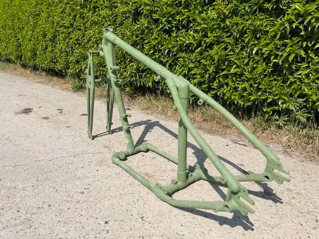 Frame en vork voor een Belgische FN model M86. Dit is het topmodel van FN met een 500cc of 600cc kopklep motor.