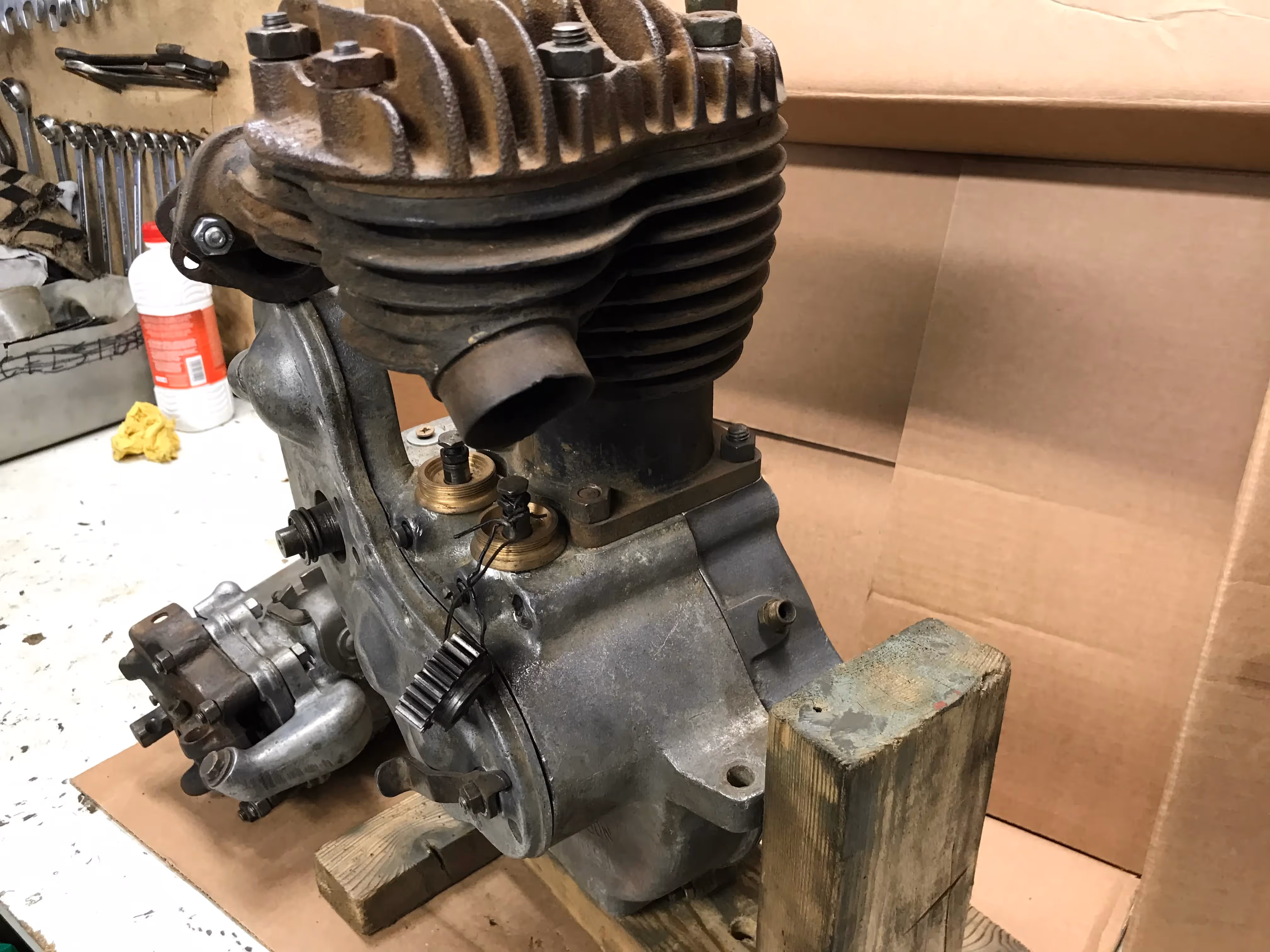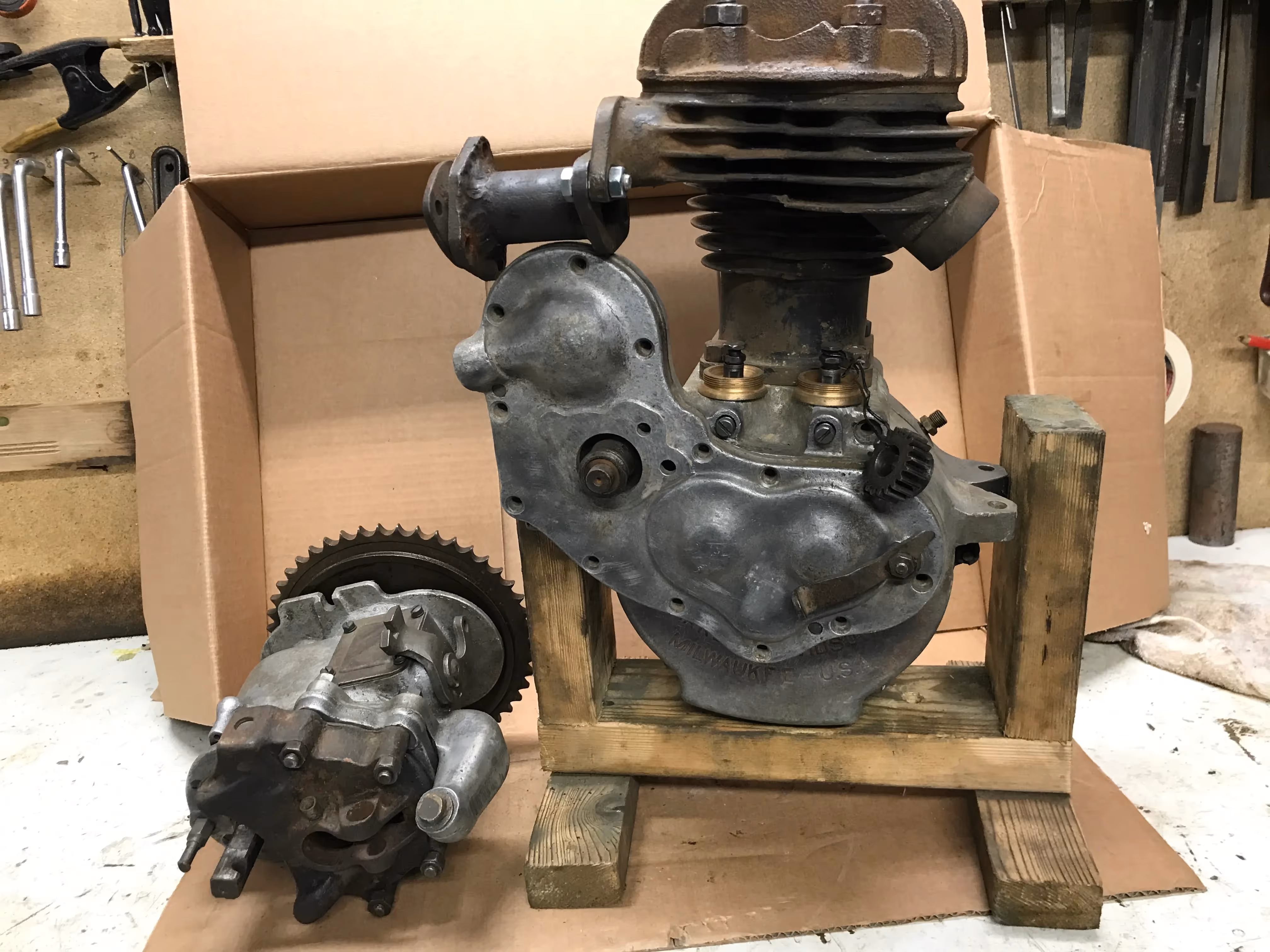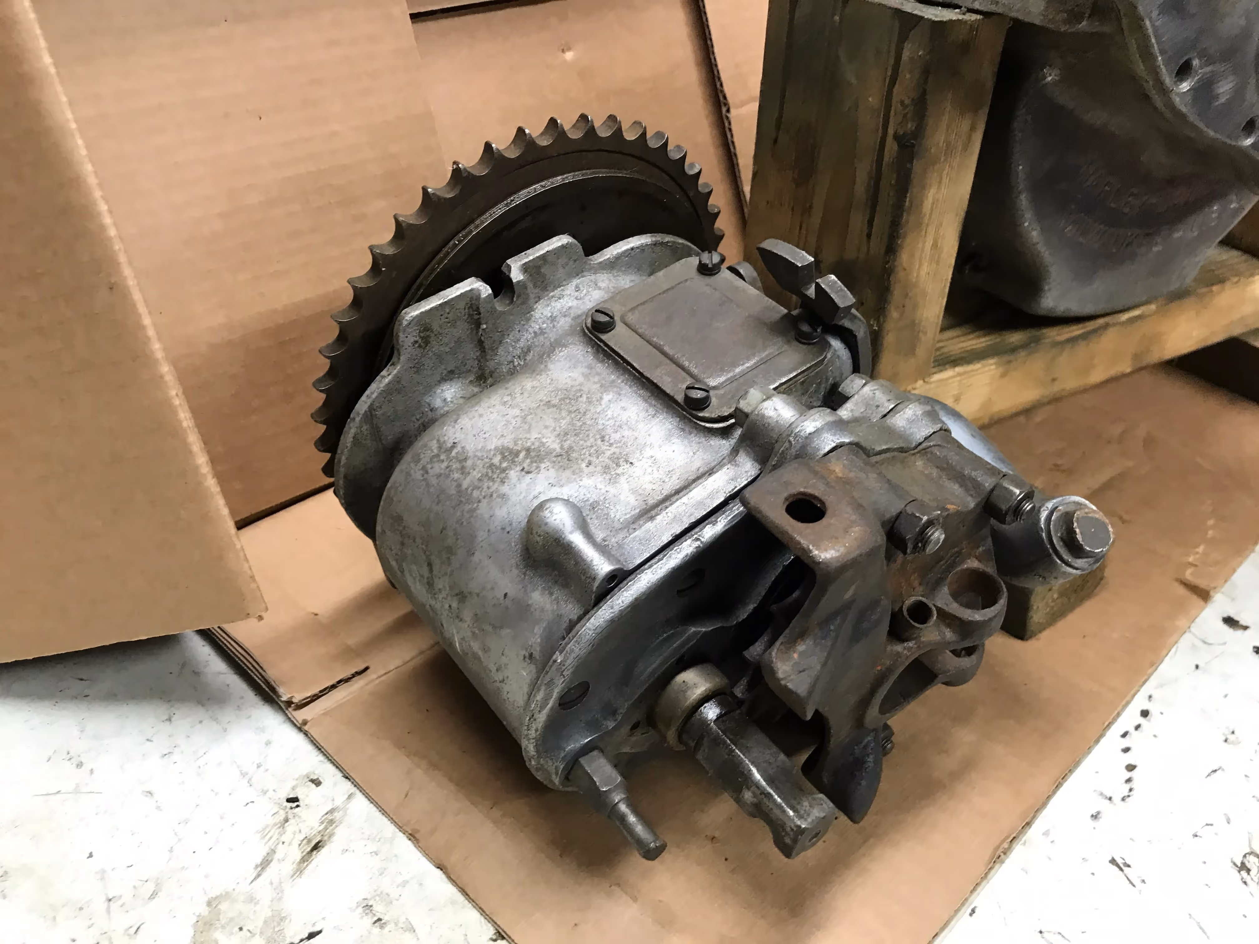 Motor en versnellingsbak en koppeling voor een Harley 350cc zijklepper van 1926 en later.