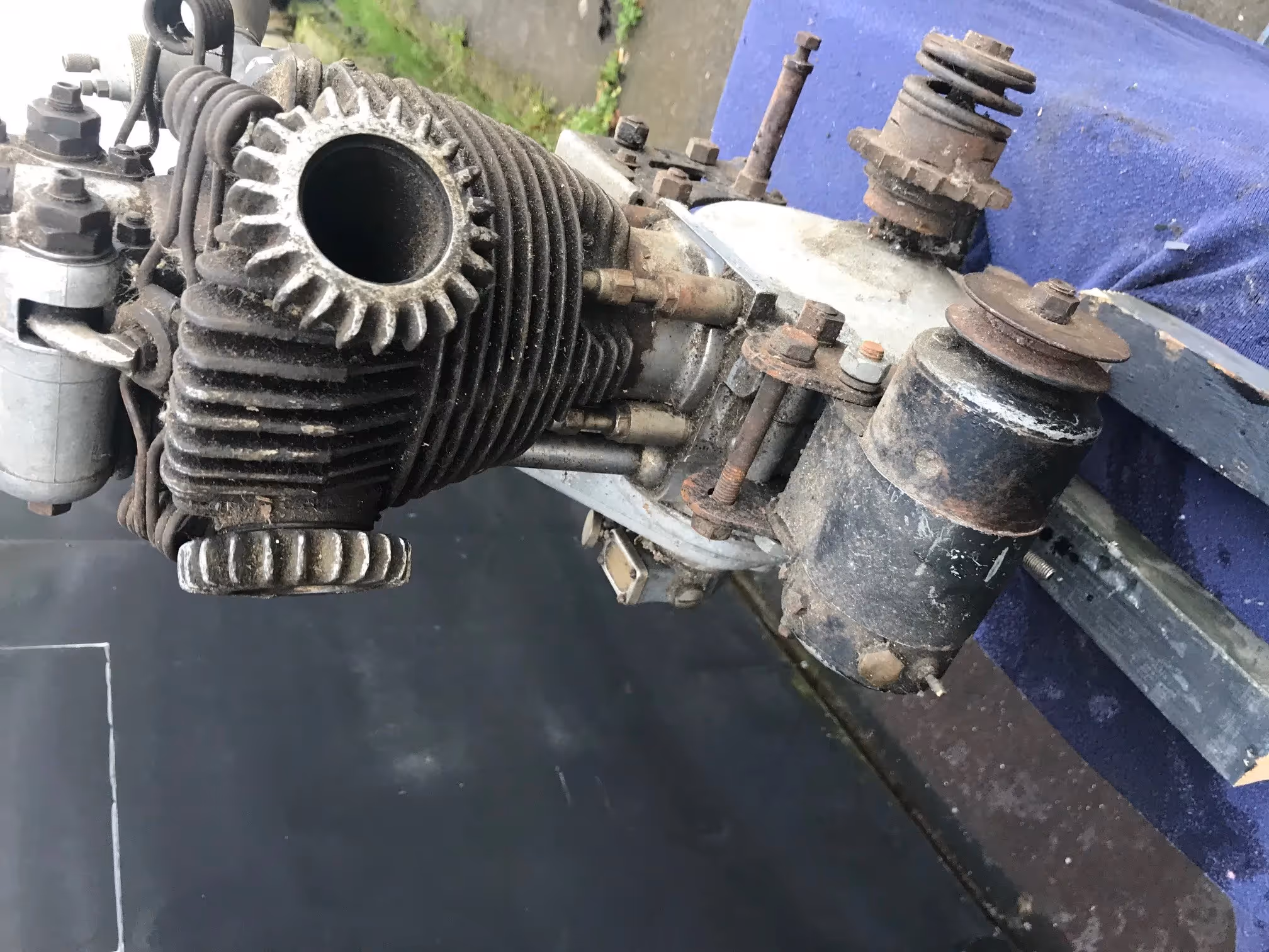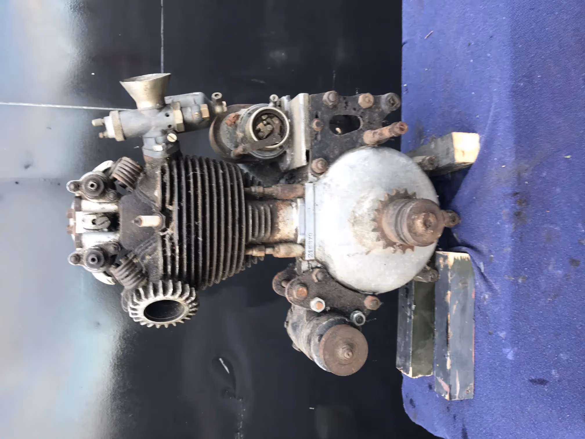 Franse Terrot HSSP motorblok. Dit is een zeldzaam sportief 350cc kopklepper met haarspeldveren en dubbele uitlaat. Motor zit los en is mooi compleet met bevestigingsplaten, magneet, dynamo, oliepomp en carburator.