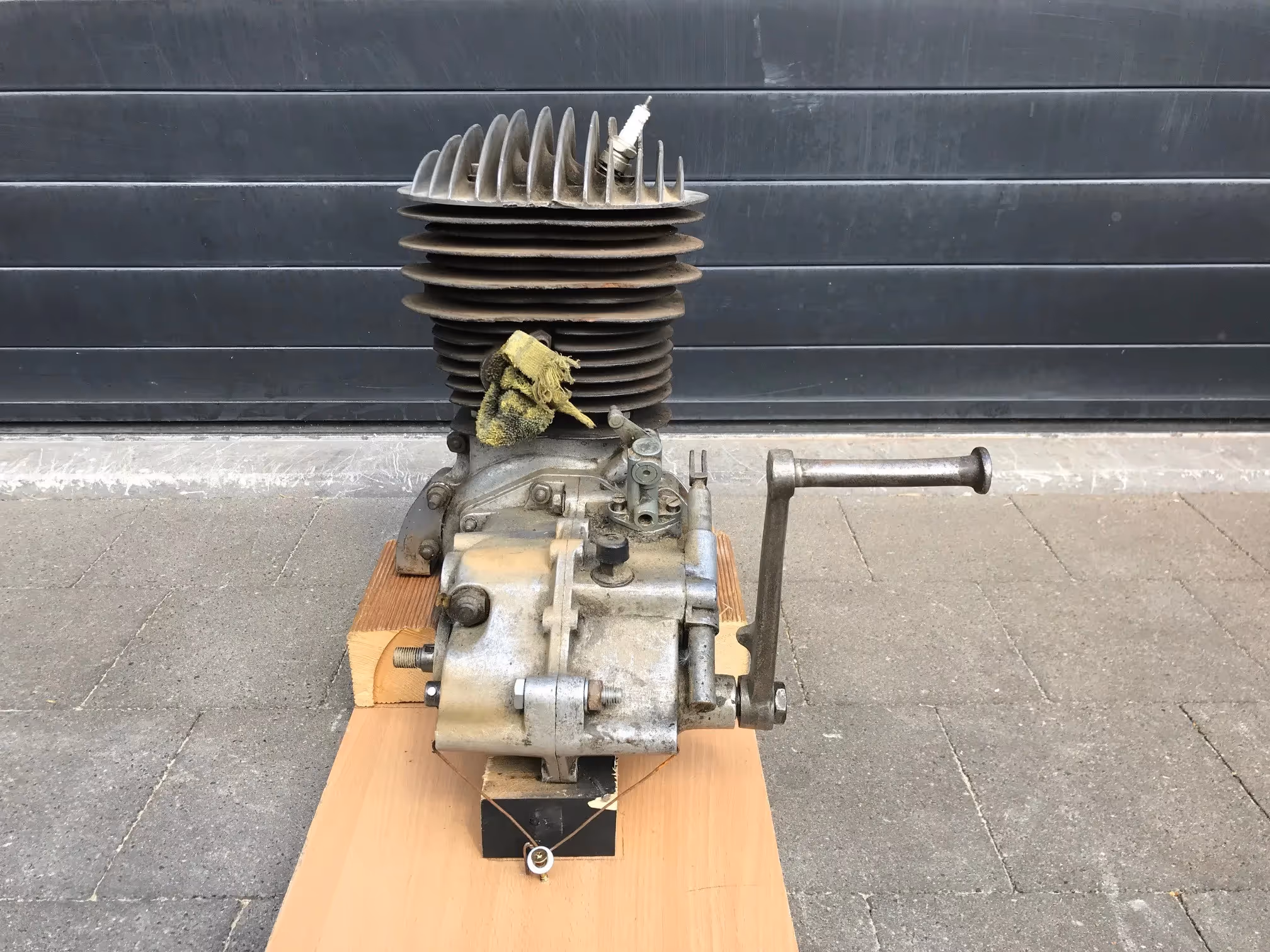 Motor voor een Oostenrijkse Puch S4. Dit is een 250cc 2 tact dubbelzuiger.