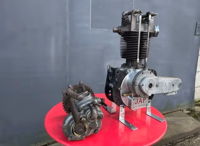 Vroege Jap OHV Sport motor met oortjes en versnellingsbak voor Terrot van 1924.